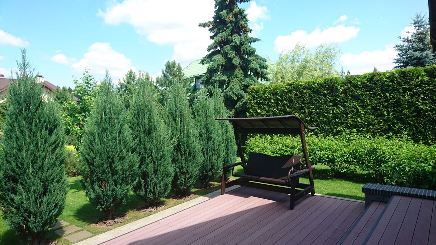 В проекте «Сада-Релакса» я стремилась к органичности, без жёстких форм. Заботясь об экологии, сохранили рельеф участка, посадили рябину для подкормки птиц зимой. В саду появились белки – охотники за кедровыми орешками. Отказ от модных злаков был обоснован наличием аллергических реакций у младшего поколения семьи.