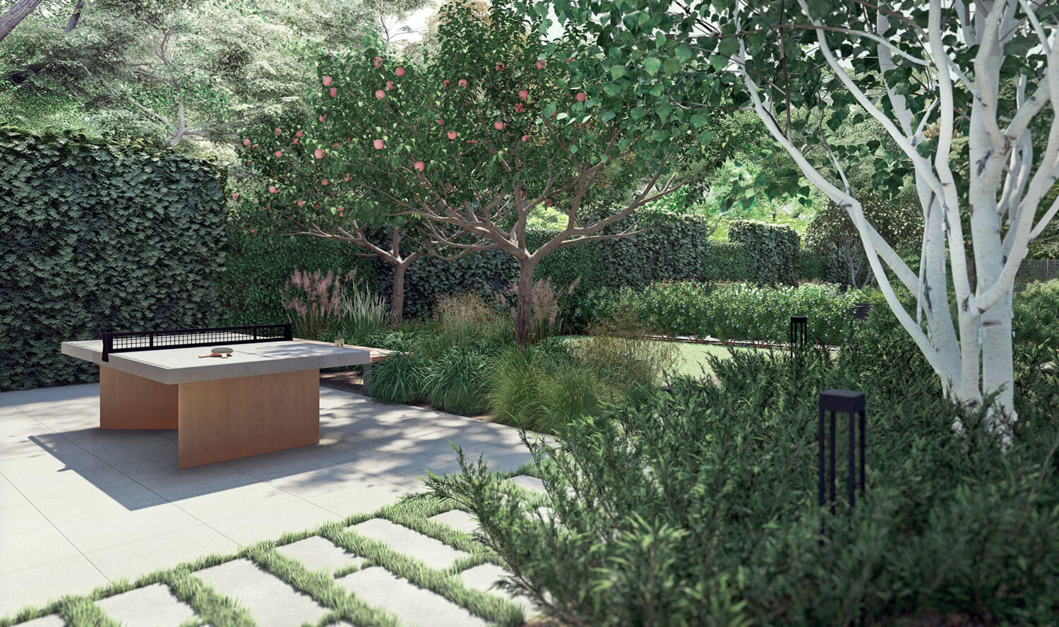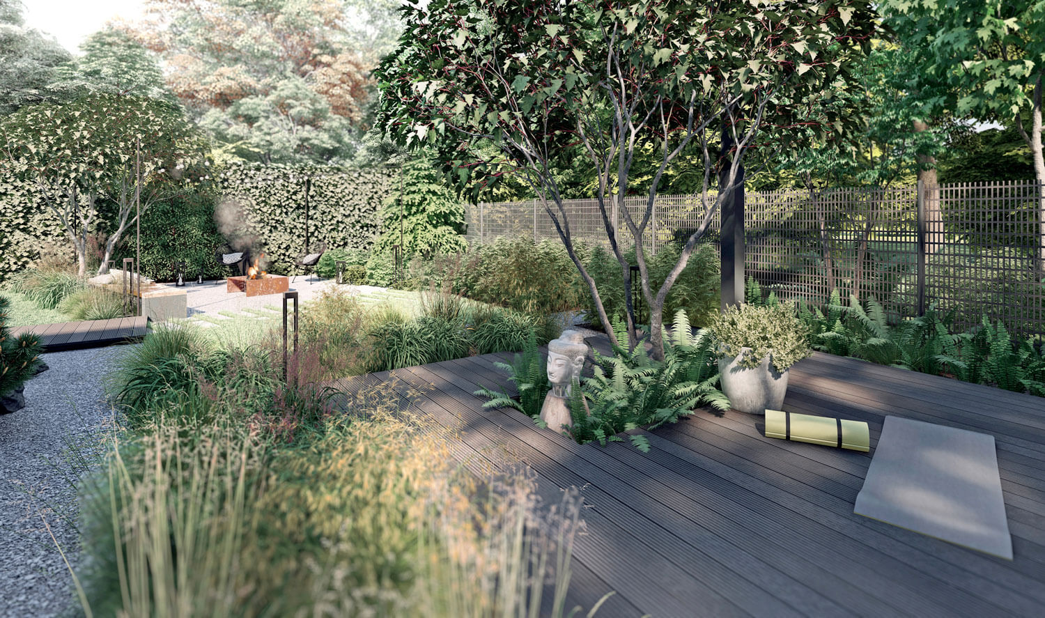 А вот в дальней части сада нашлось место для уединения и медитаций — но и тут авторы смогли совместить разные культуры за счет объединения общими стилистическими решениями.
