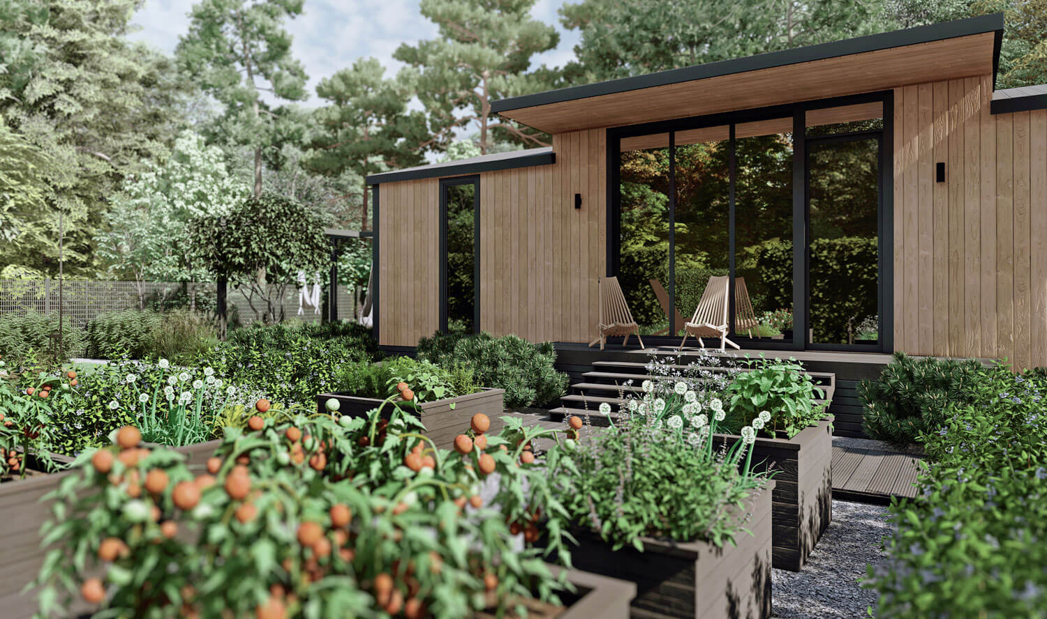 Архитектура дома перекликается окружающей природой, природный ландшафт подчеркивает эстетику дома — это лейтмотив проекта «Сад Северный».