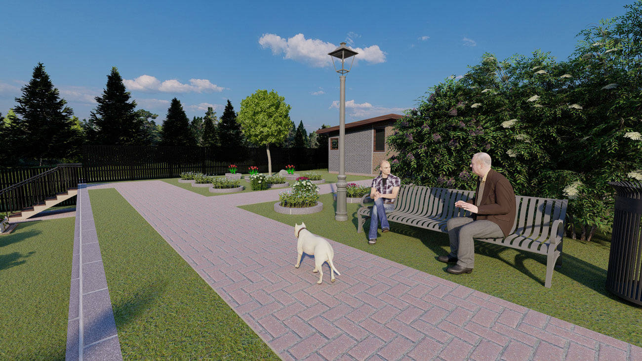 Функционал достигается за счёт разбивки территории на 3 функциональные зоны, которые предполагают набор растений под разные времена года.