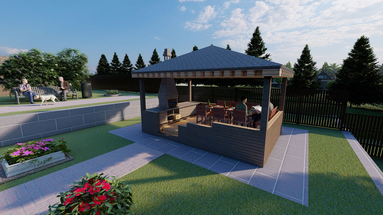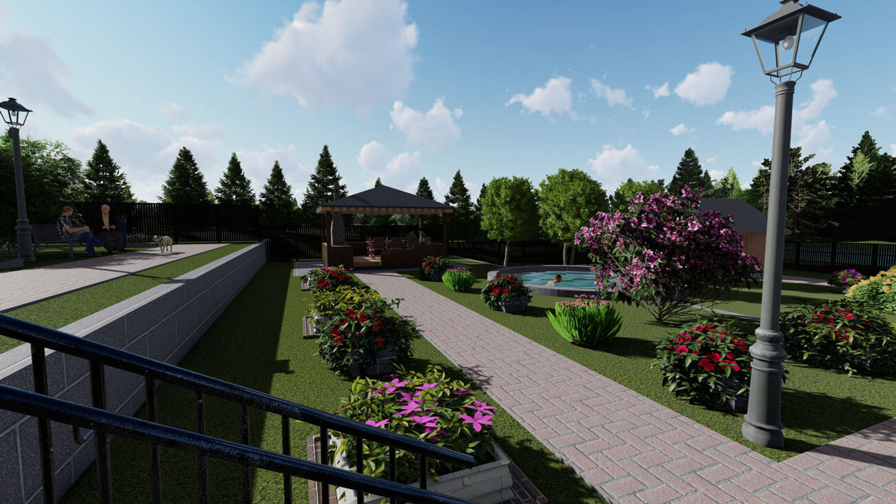 Подобное расположение территорий и набор растений предполагают поддержание душевного равновесия и положительных эмоций владельца на протяжении всего года.