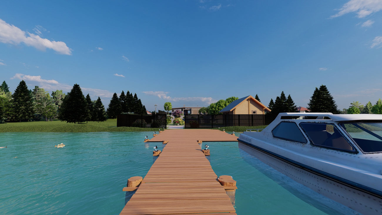 На последнем участке, расположенном ближе остальных к реке и предназначенном для осеннего сезона стоит баня, напротив беседки посажены яблони и груши, есть немного свободного пространства рядом с водоёмом и на участке рассажены георгины, хризантемы и астры. В конце участка есть выход к пирсу, построенному для более удобного пользования речной территорией.