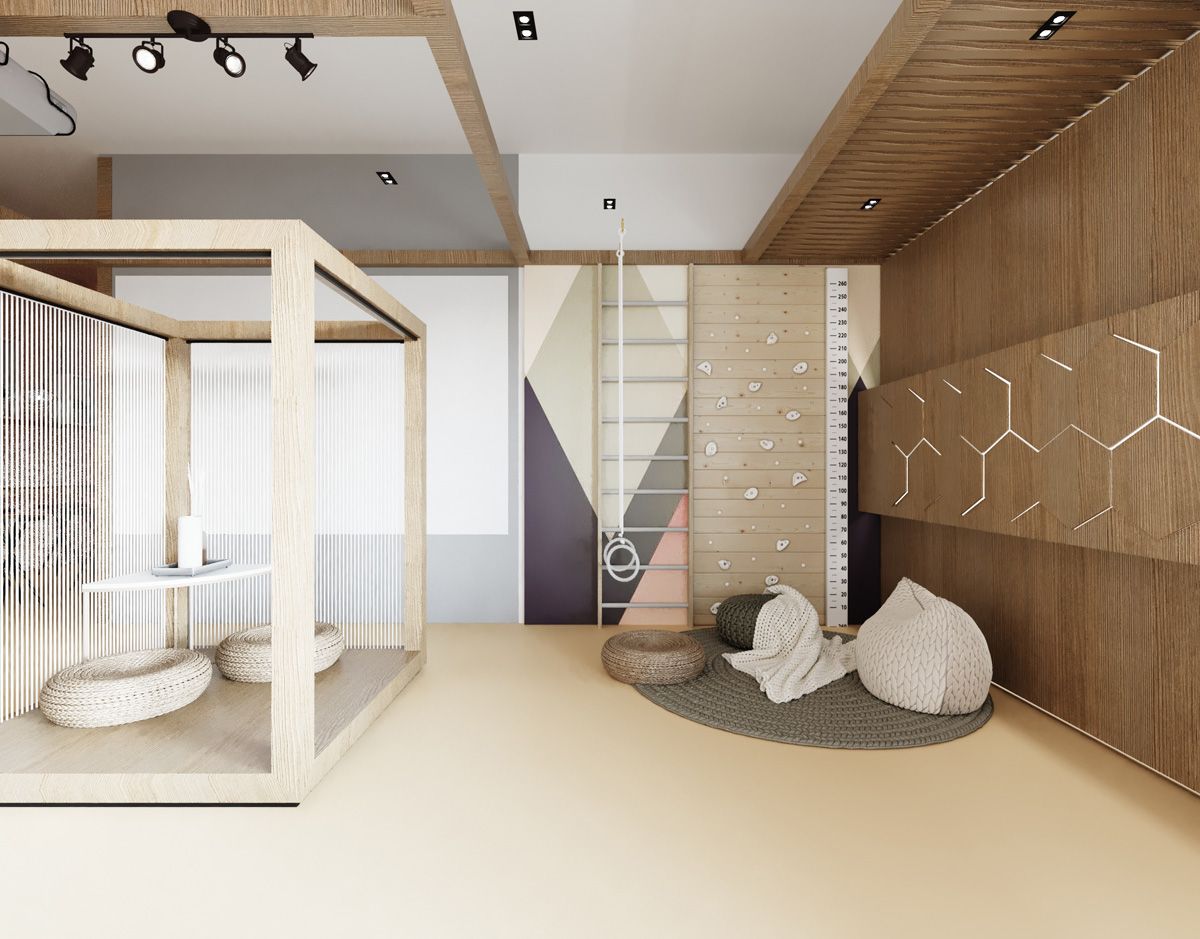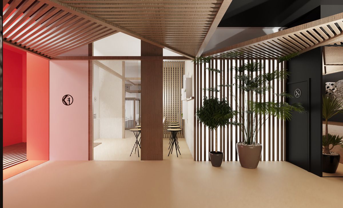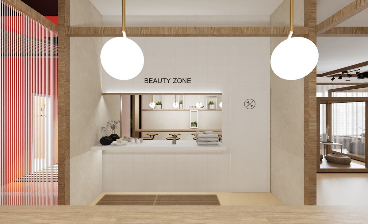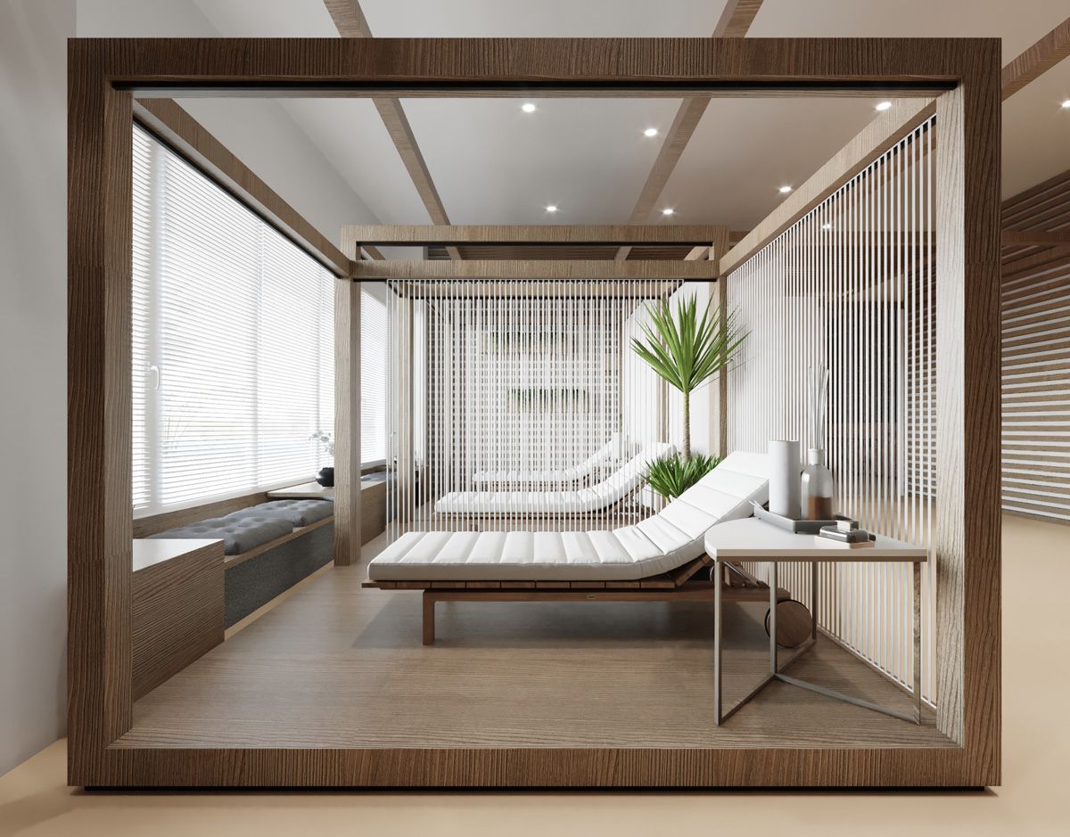 Основная задача проекта — обеспечить комфорт и удобство пребывания посетителей. Теплое цветовое решение, натуральные материалы (дерево, камень). Места для отдыха, специально-оборудованные зоны для спа-процедур.