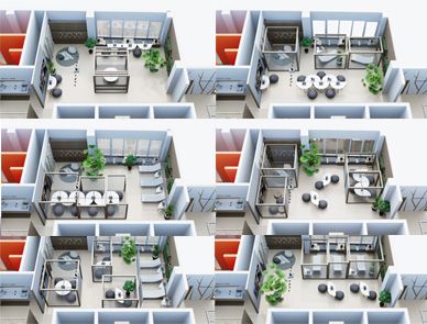Центром композиционного и планировочного решения является «Куб» — очаг, который представляет собой несколько модулей, способных создавать различные комбинации в плане и увеличивать поведенческие сценарии посетителей. Чайные церемонии, интерактивные проекции, детские развлечения, уединение, встречи большой компании. «Куб» концентрирует пространство общественного взаимодействия.