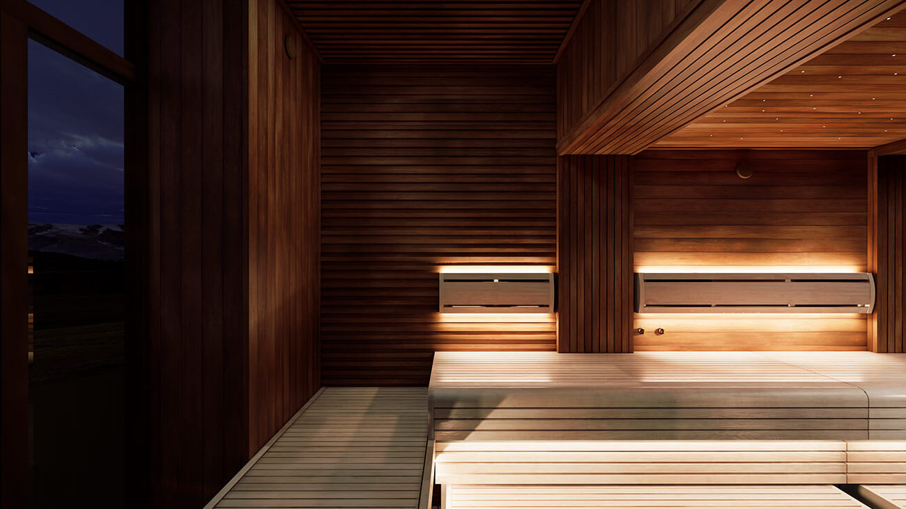 В качестве света в сауне была установлена термостойкая силиконовая лента и оптоволоконное точечное освещение «Звездное небо» на потолке. Утро в Манхэттене... Пожалуй, мы готовы к встрече рассвета!