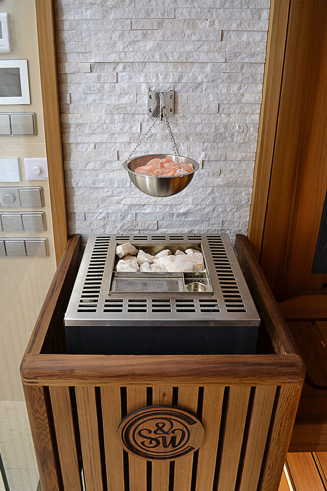 • Материал отделки сауна (стены, потолок и полки) — массив Канадского красного кедра.