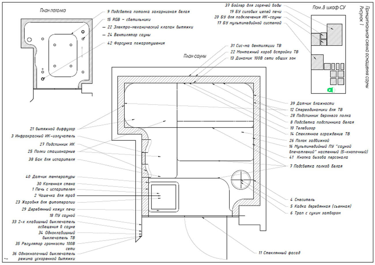 • Освещение сауны должно быть выполнено в виде: