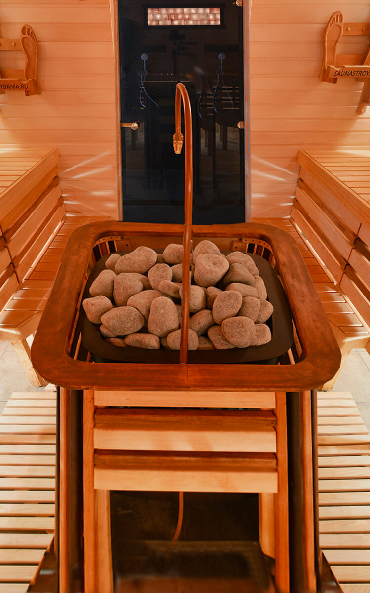 3. Проектирование в спа двух парных — финской и русской от 40 до 60 м³ — с использованием печей от 24 до 40 кВт с большим объемом камней, что обязательно для получения большого объема пара в режиме русской парной.