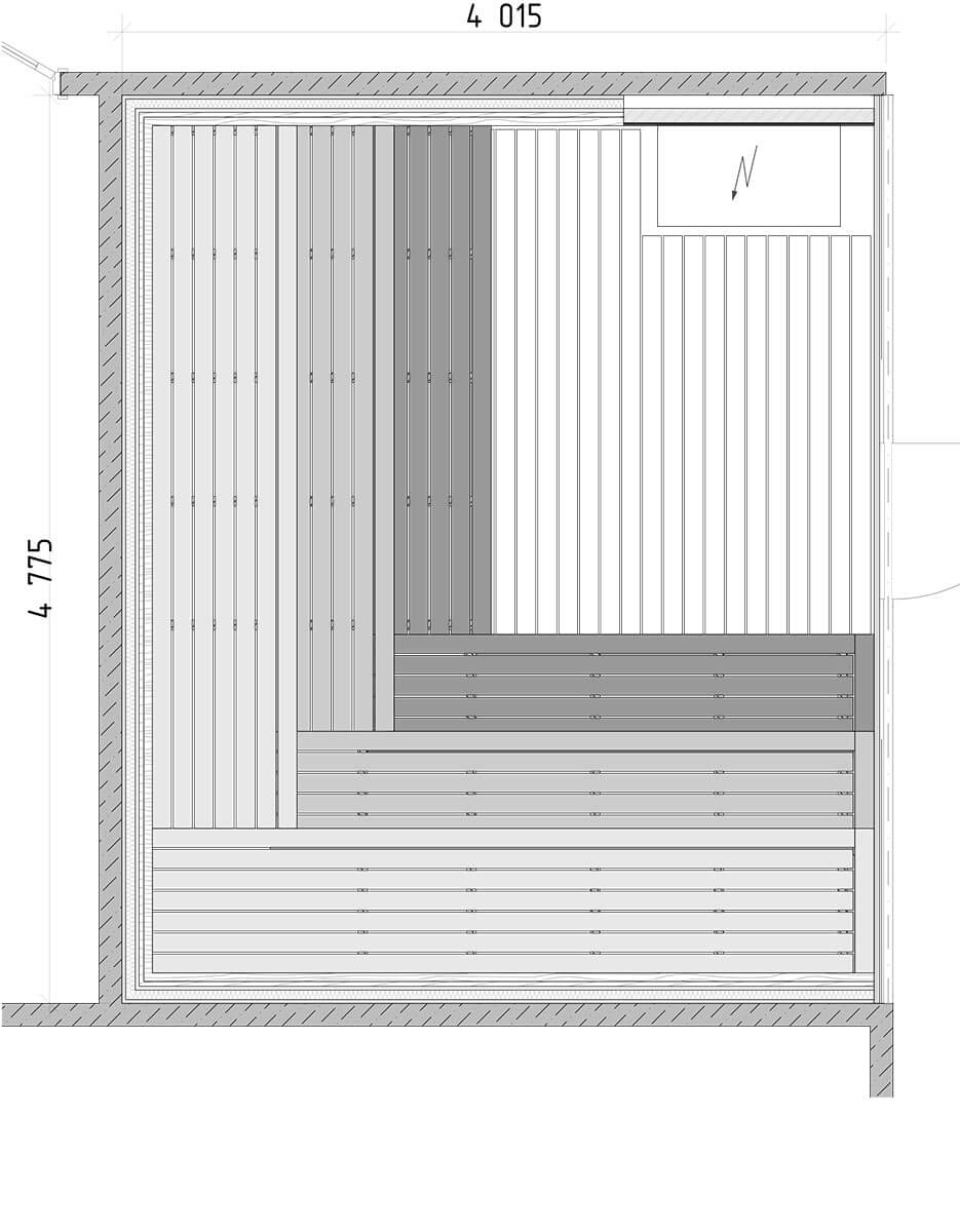 Парящий потолок изготовлен из швейцарских панелей европейского дуба и отлично подходит к дизайн-проекту помещения. Высококачественная электрическая печь с большим объемом закладки банного камня и встроенным парогенератором позволит по-настоящему насладиться режимами работы как классической сауны, так и русской бани!
