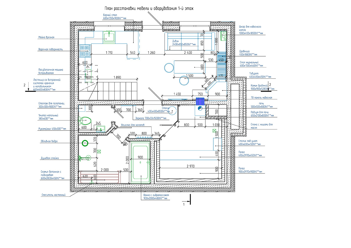 В двухсветной зоне отдыха имеется гостевая комната, кухня и бильярд, где хозяева могут отдохнуть после посещения сауны.