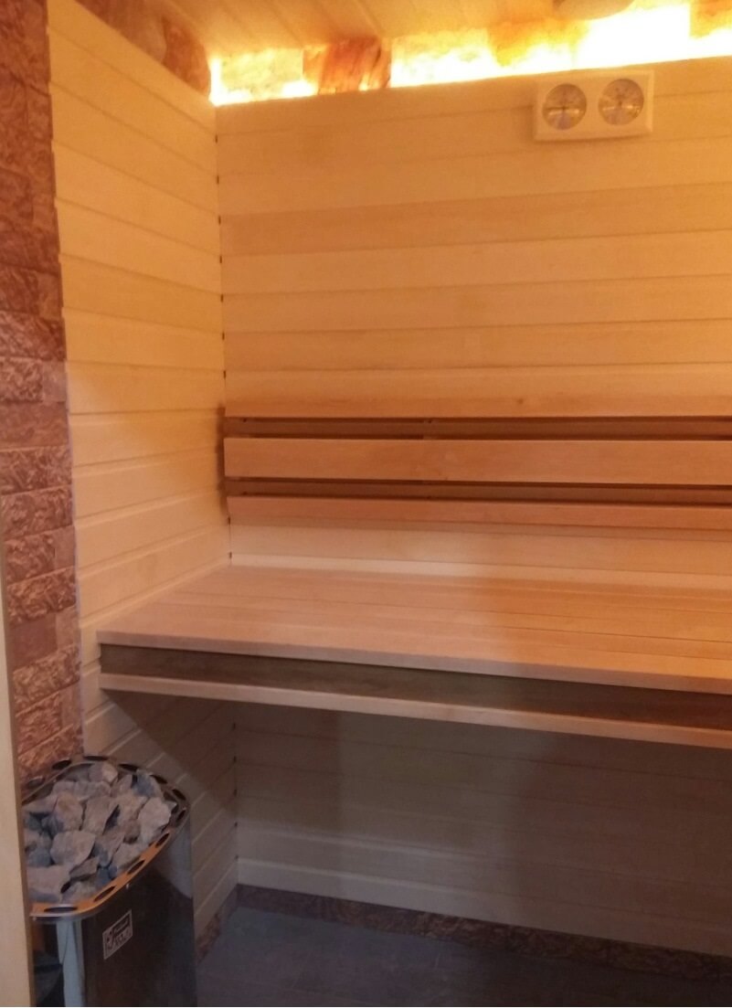 Освещение в сауне — за счет подсветки соли светодиодной лентой компании Harvia, оно создает особый комфорт и уют.