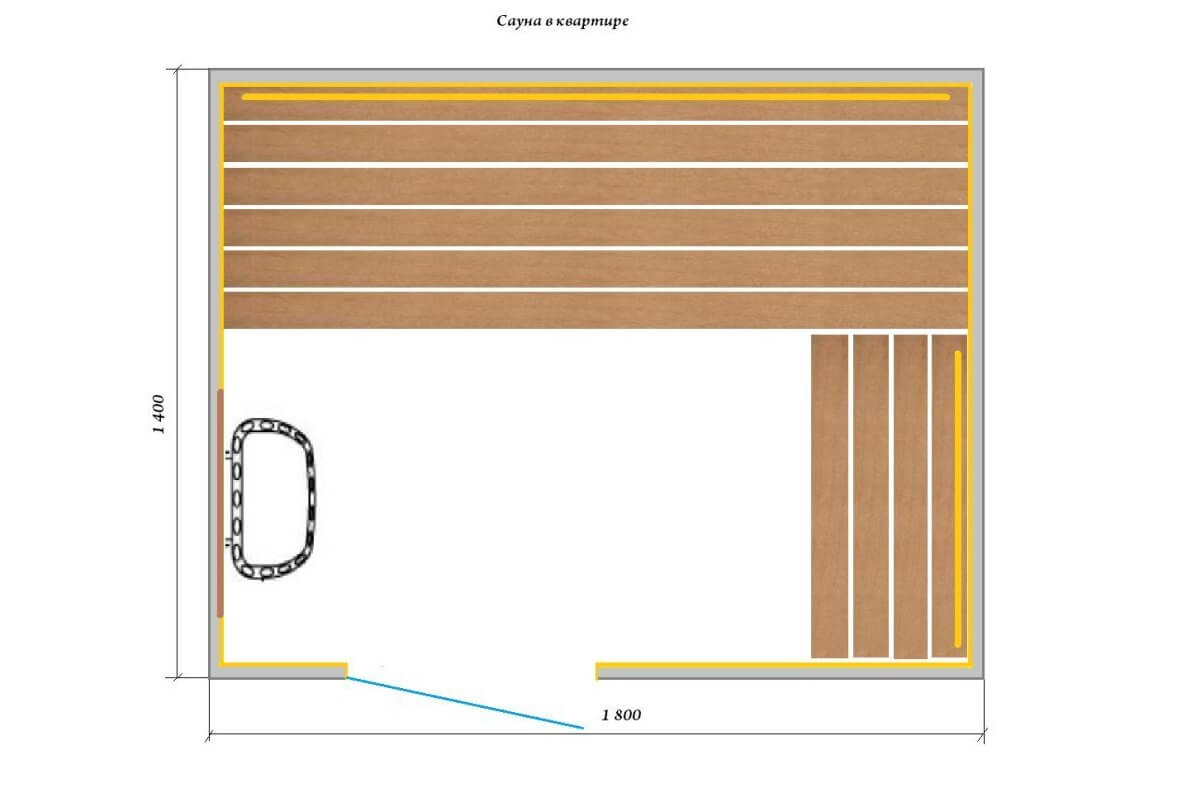 Чтобы приобщить двоих малышей к банным процедурам, молодые родители решили обустроить сауну. Для этого было выделено помещение площадью 2,5 кв.м в квартире.