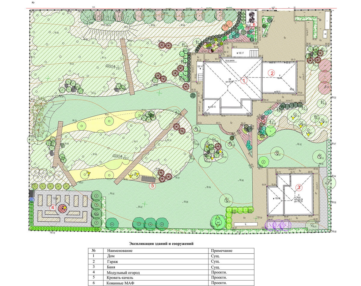 Таким образом, ландшафтная композиция сада создается за счет целесообразного структурирования территории, а также организуется комфортная визуальная среда для прогулочного и кратковременного отдыха.