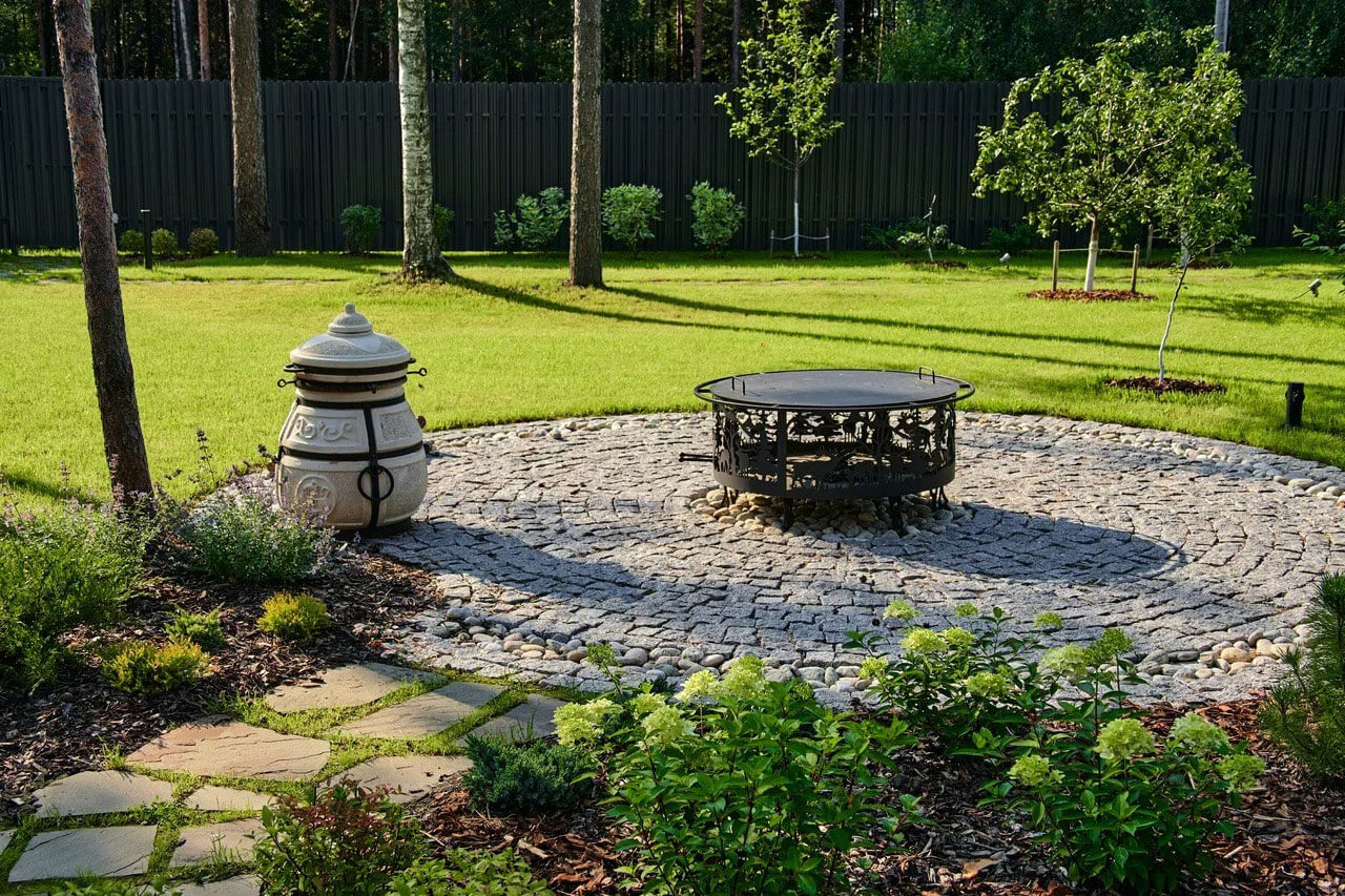 Прогуливаясь по ним, можно ощутить себя в камерном небольшом саду, c очагом и плодовыми деревьями, обрамляющими зону вдоль забора.