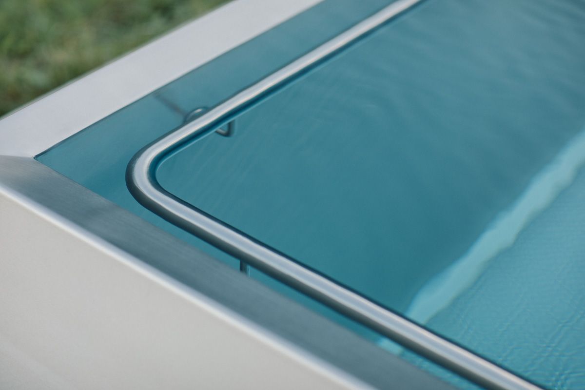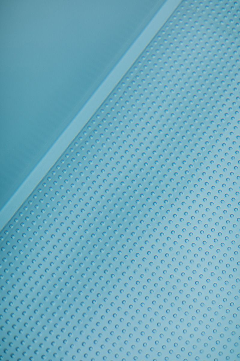 Благодаря запатентованному противоскользящему тиснению поверхности Berndorf Baderbau создается дополнительный эффект голубой воды. Тиснение способствует искажению попадания света и голубой преобразуется в великолепный бирюзовый оттенок воды. Это уникальное техническое решение преломления света зависит от формы и большого количества выступов тисненой поверхности и является одной из инноваций производителя.
