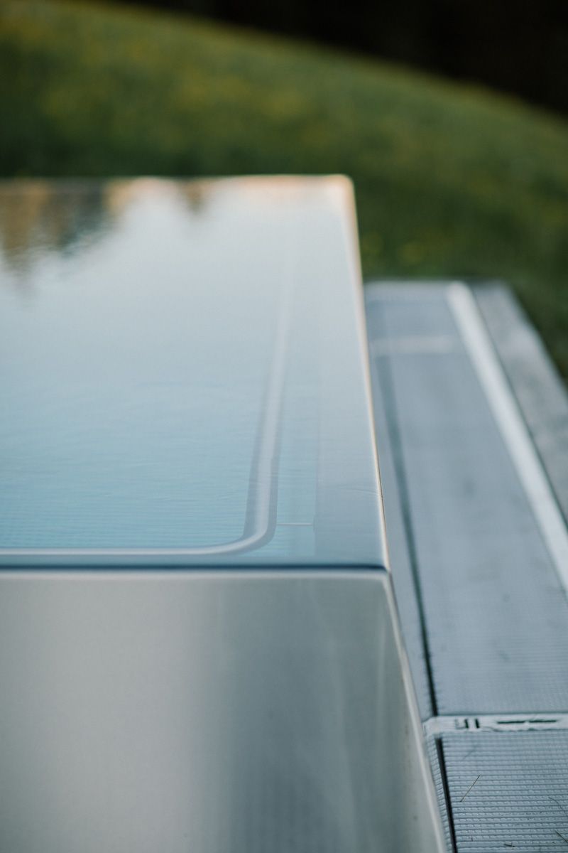 Вопрос выбора материала решился достаточно быстро. Нержавеющая сталь — прекрасное дополнение к высококачественным материалам, используемым в Bergdorf Priesteregg, и идеально подчеркивает философию этого места.