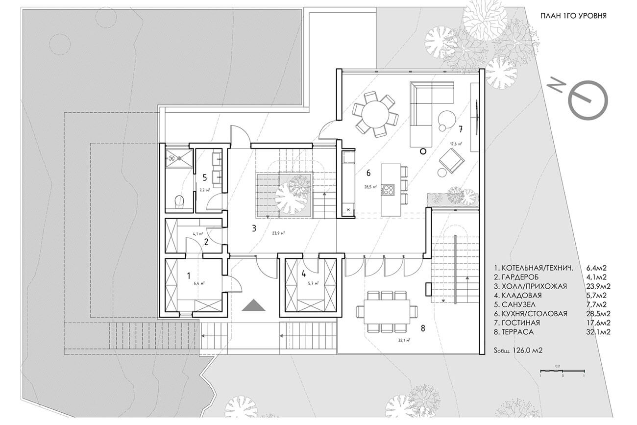 Площадь первого этажа: 126,0 кв.м