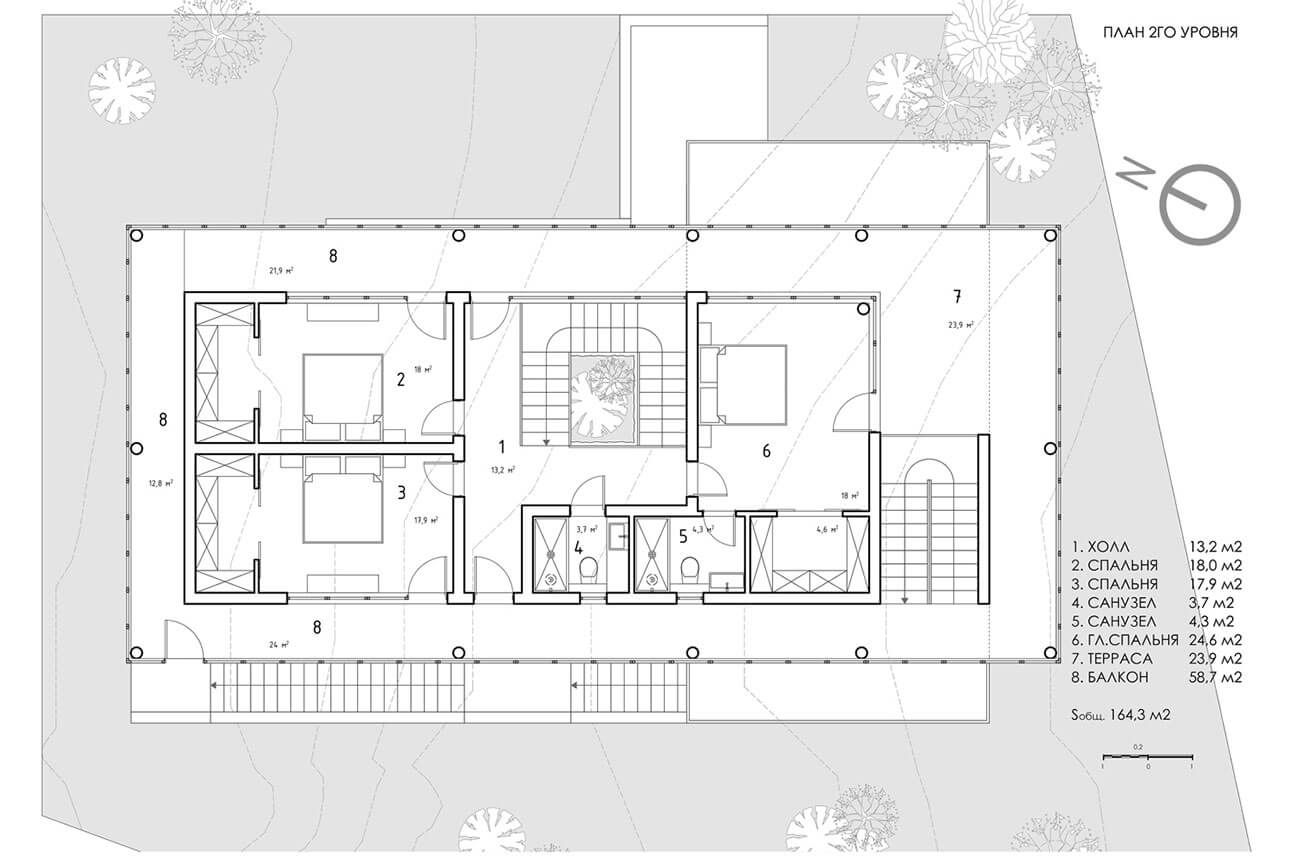 Площадь второго этажа: 164,3 кв.м