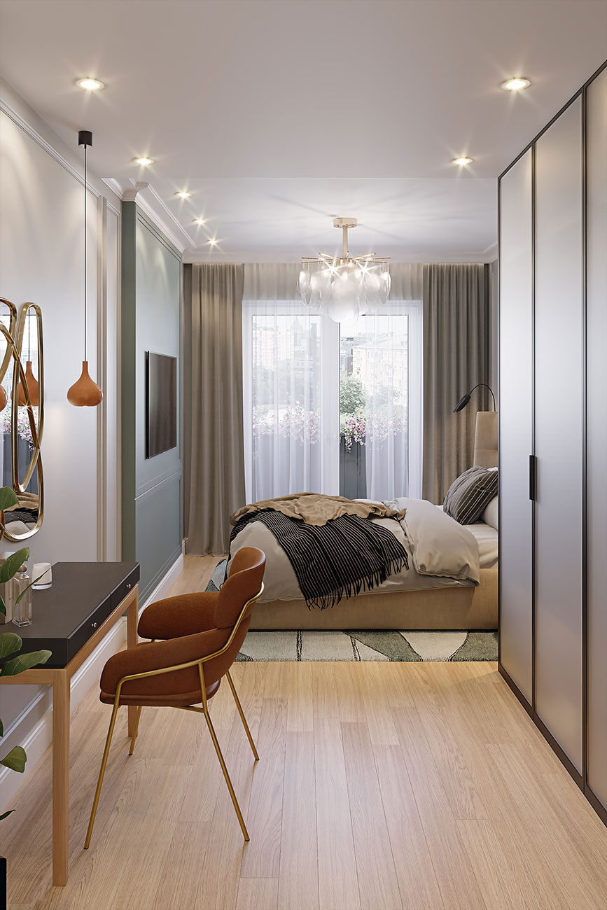 Интерьер создан для молодой девушки, вернувшейся в Россию из Европы после обучения.
