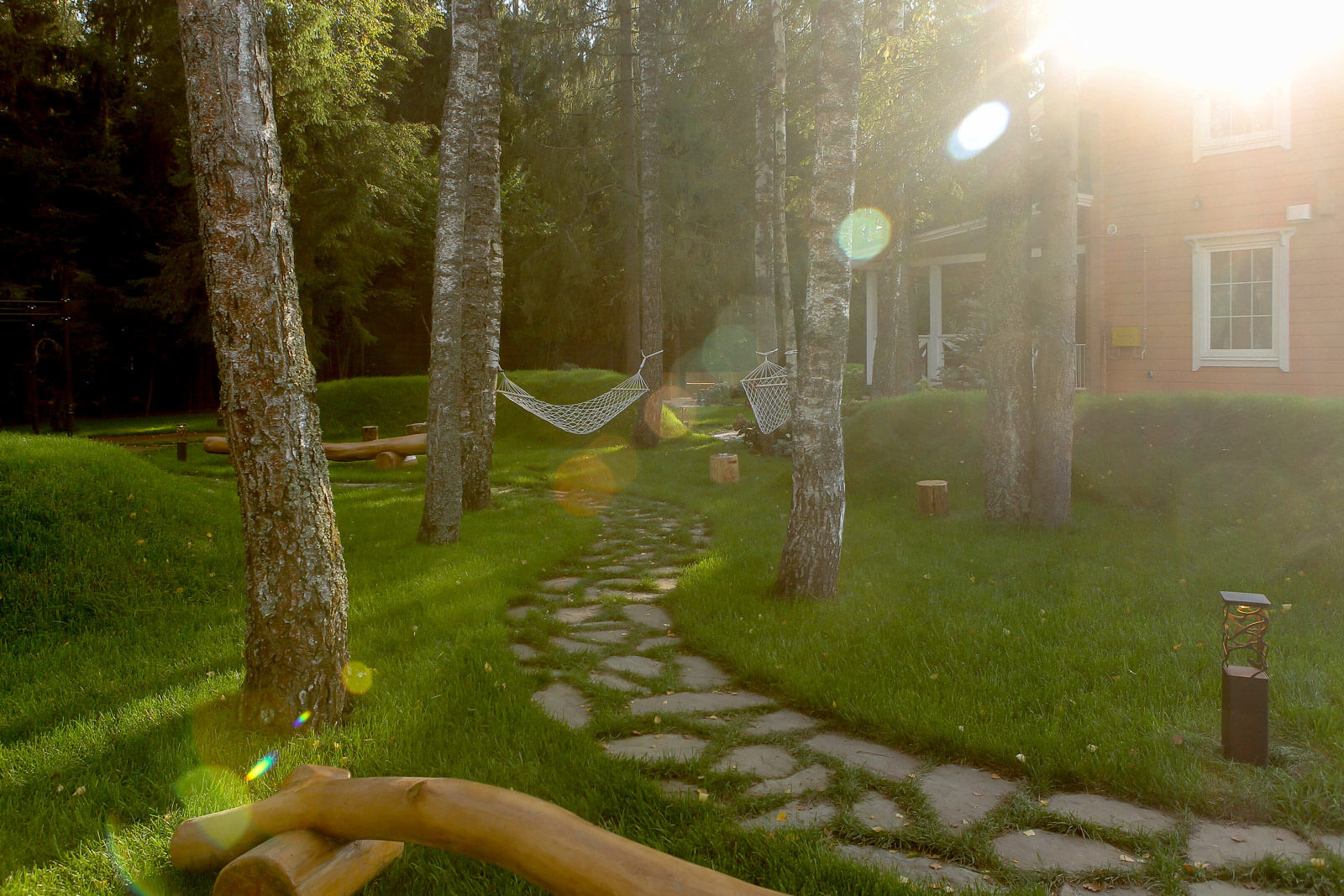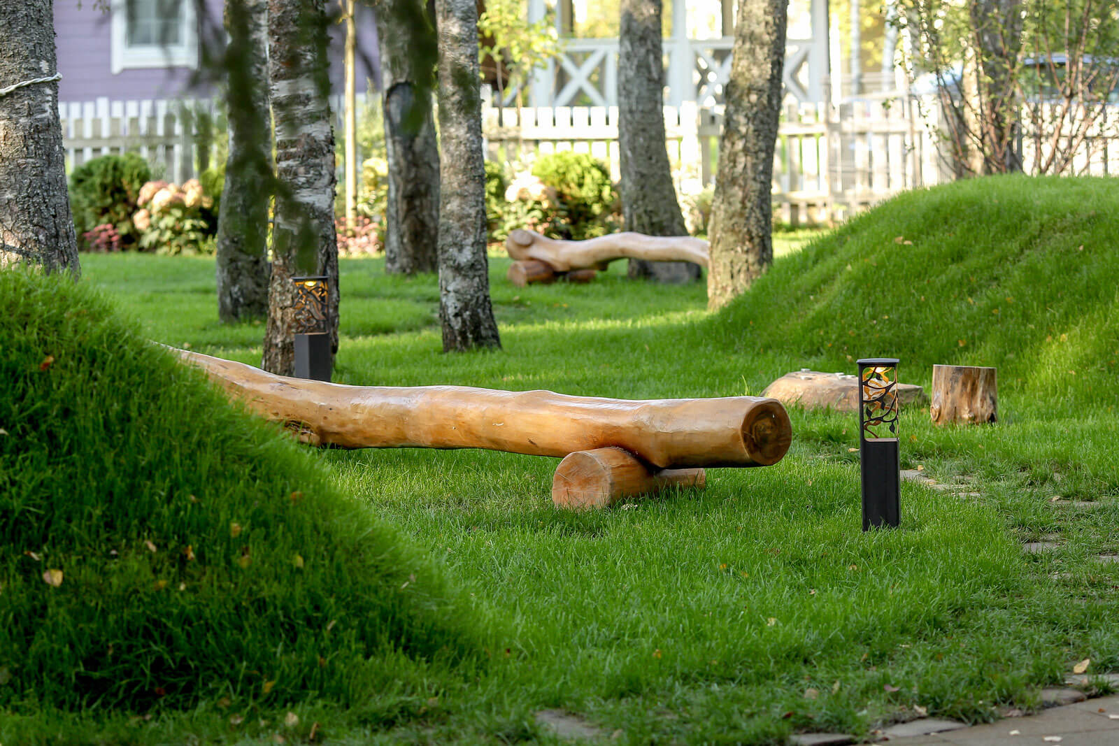 МАФЫ — это неотъемлемая часть сказочного леса — здесь есть разнообразные пни-табуретки с ручками, скамьи из стволов деревьев, пеньки — светильники, валуны, а еще множество скворечников и бельчатников.