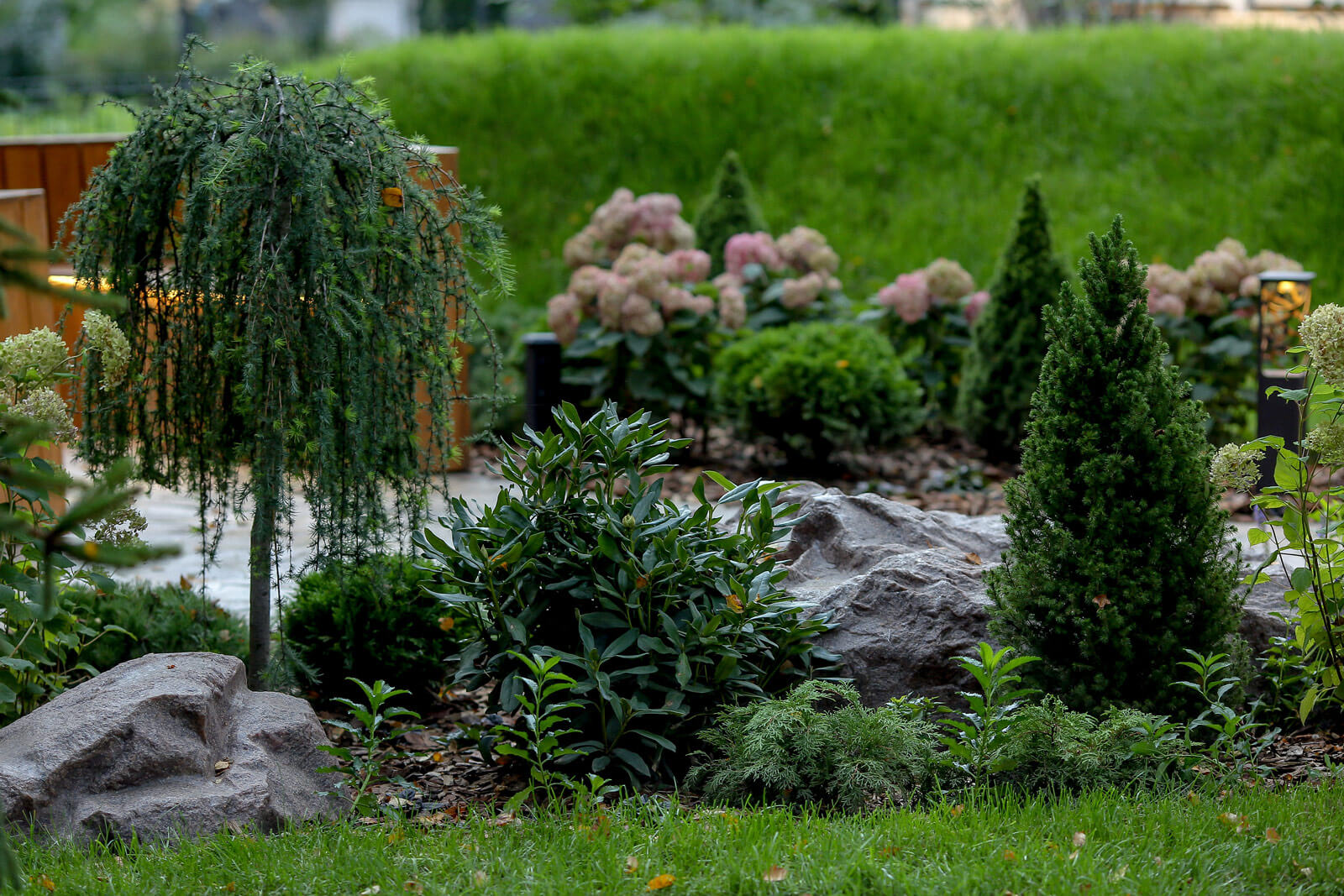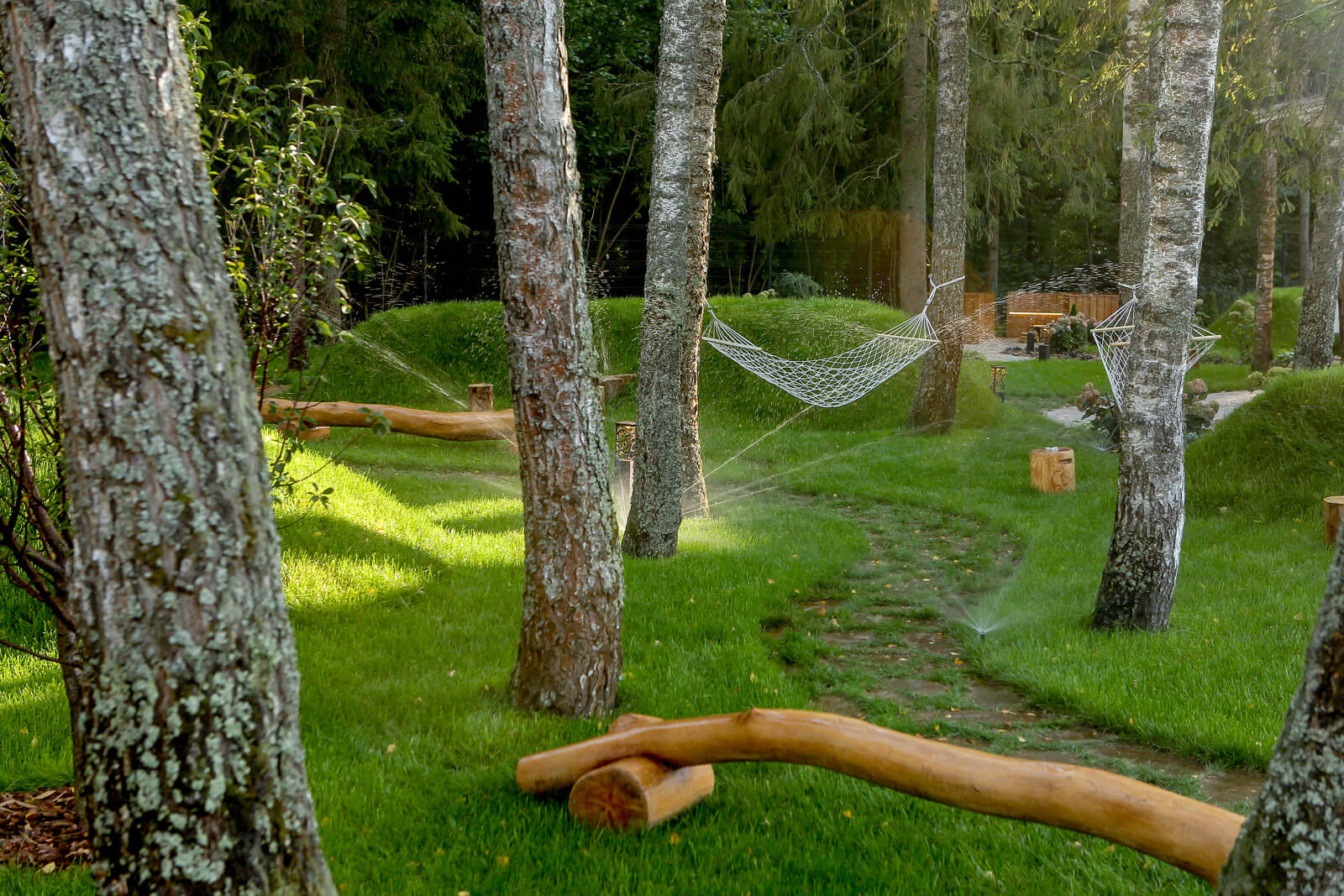 В основе концепции сада «Сказочный лес» лежало создание абсолютно рекреационного объекта. Владельцы участка, которые большую часть года проживают в городе, мечтали иметь место сезонного отдыха, где можно отдохнуть душой.