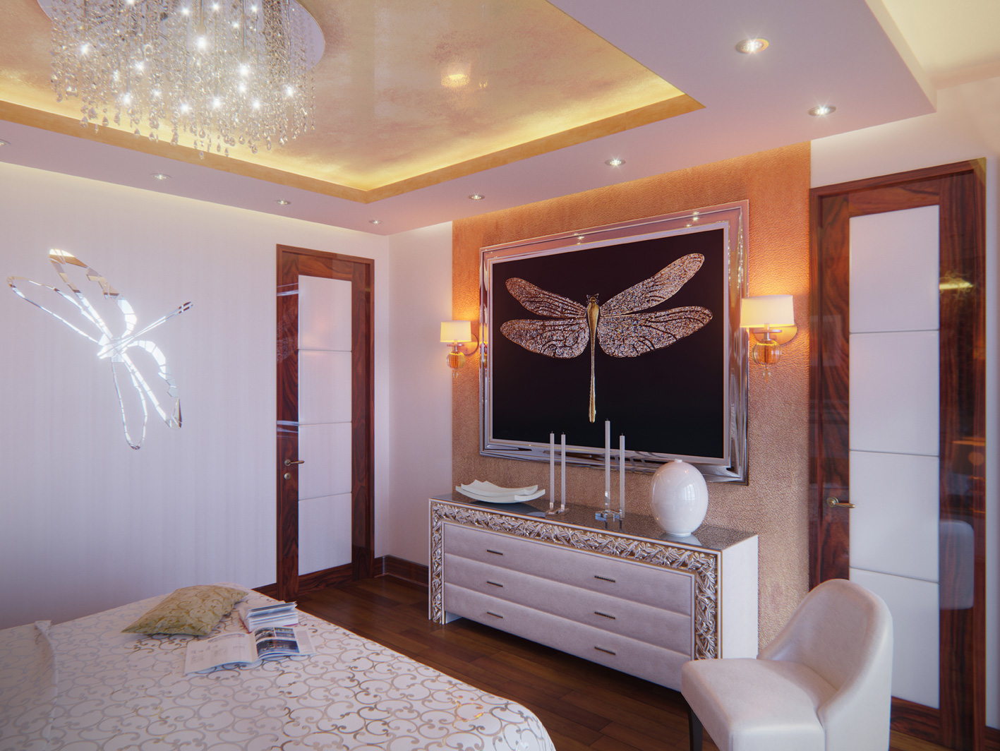 Представляемые работы являются визуализацией части проектного предложения дизайна интерьера частной квартиры в ЖК «Мосфильмовский». На данный момент проект находится на стадии реализации.