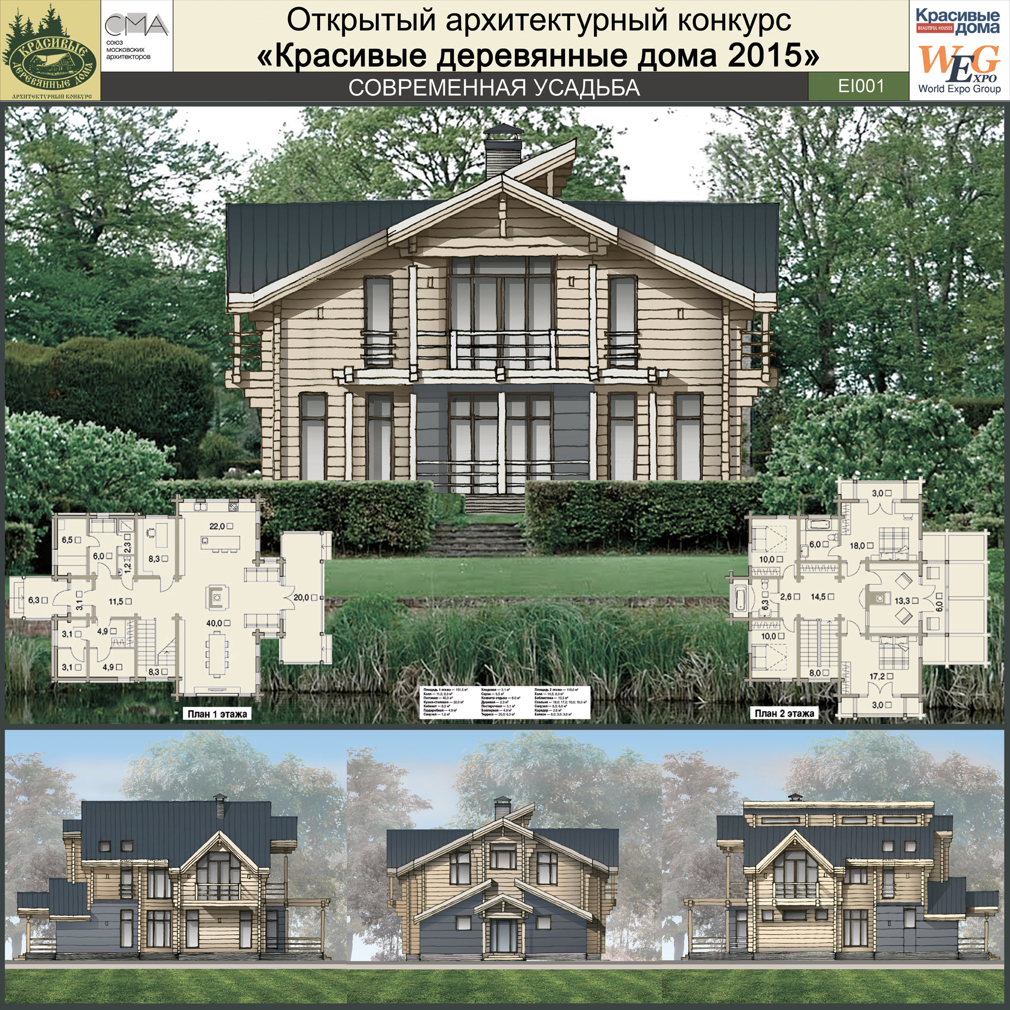 А за счет открытых пространств, второго света и фахверка с видом на сосновый лес, создается ощущение максимального единения с природой даже находясь в доме.Современная усадьба