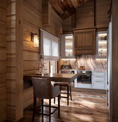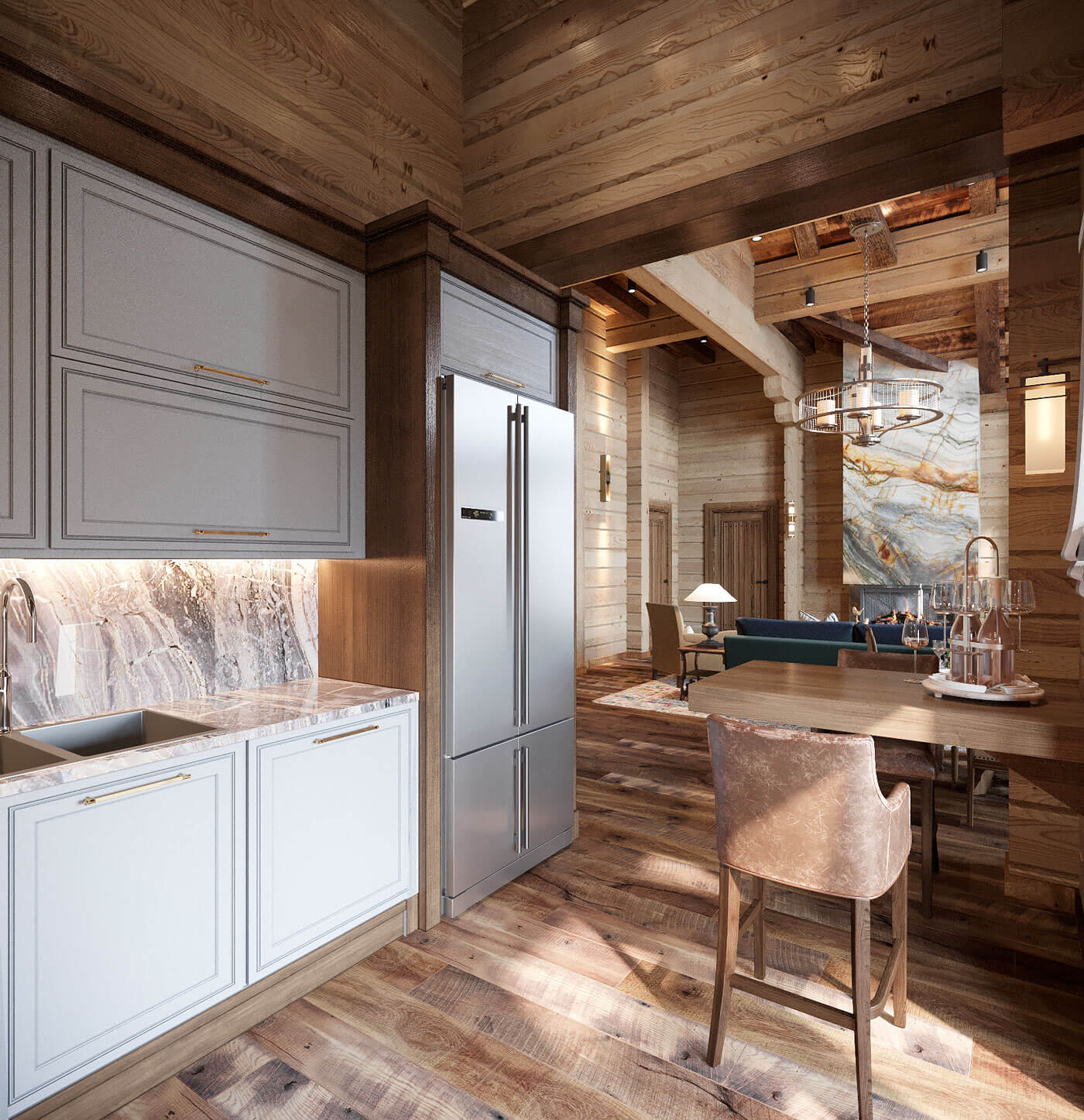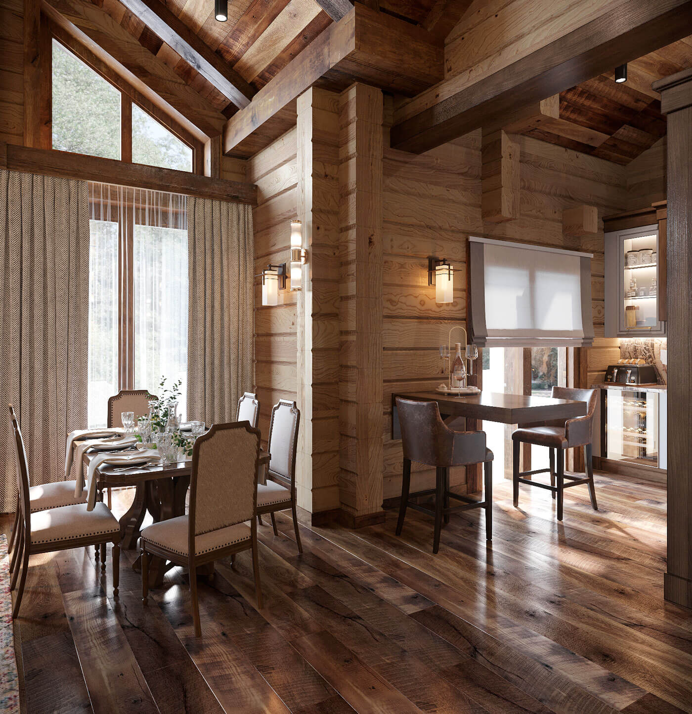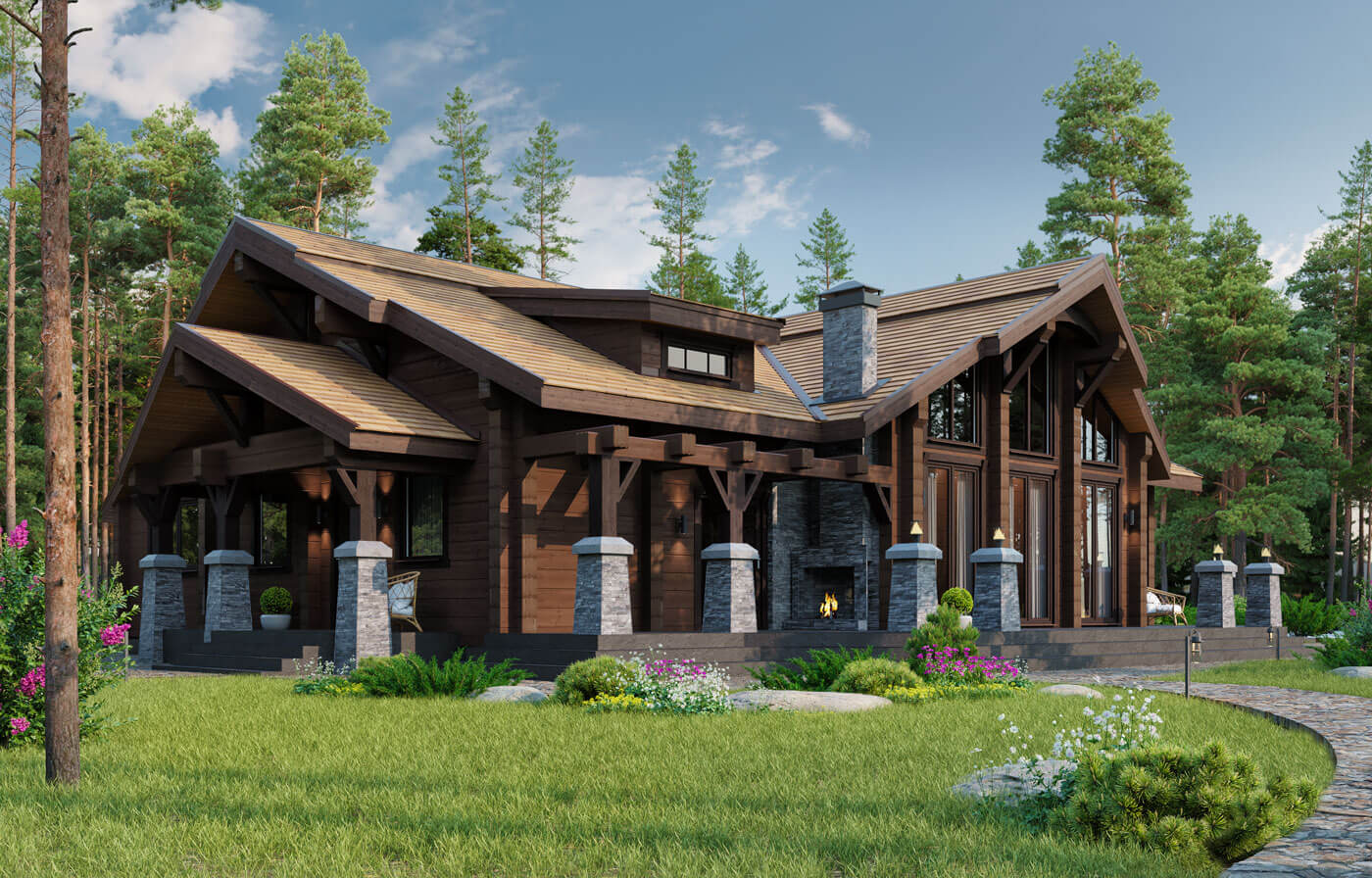 В данном проекте был выбран стиль дизайна «современное американское шале». Предпочтение отдавалось натуральным цветам и натуральным материалам. Внутренний дизайн продолжил архитектурный стиль, что полностью объединило образ дома в единое целое.