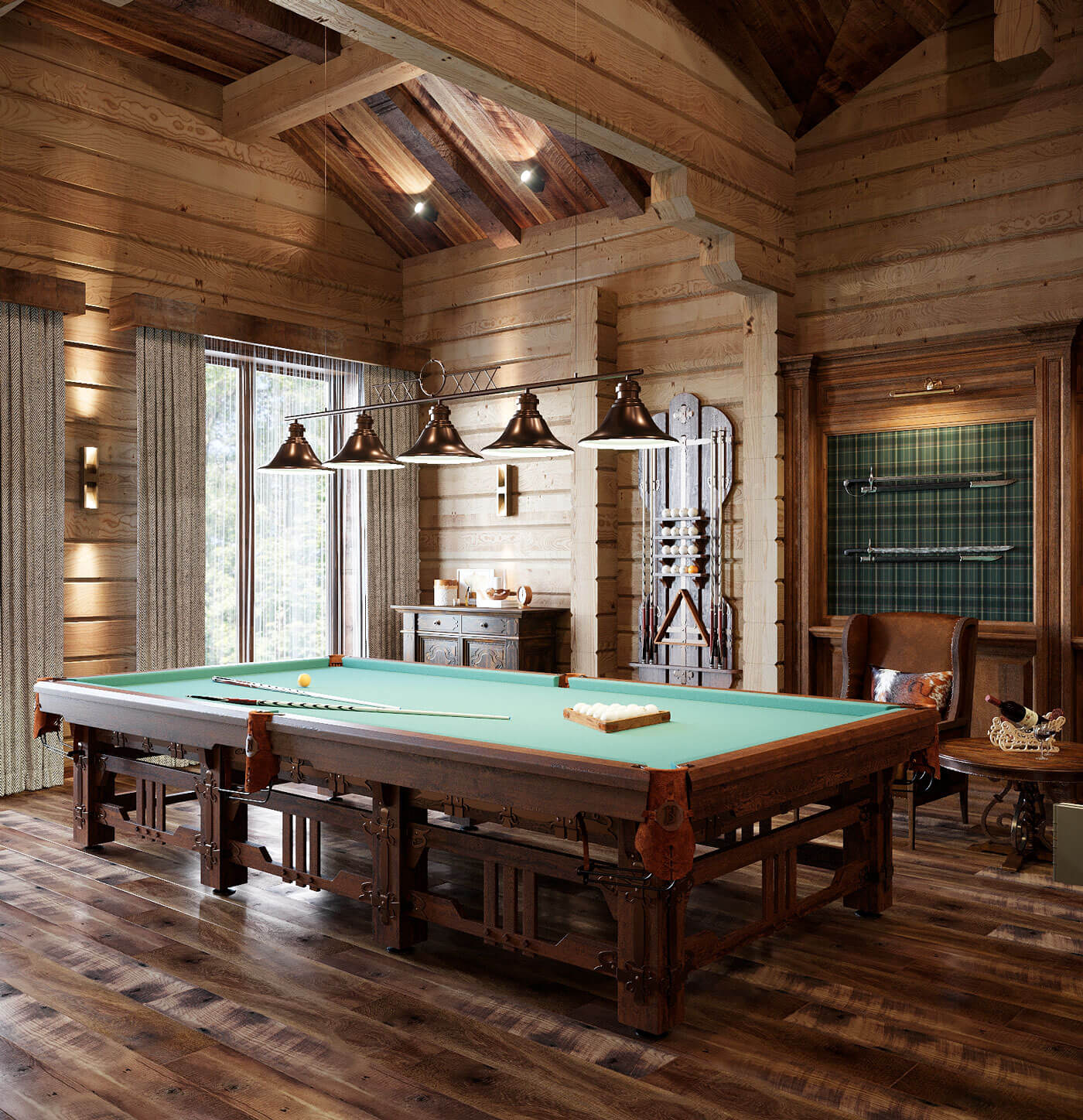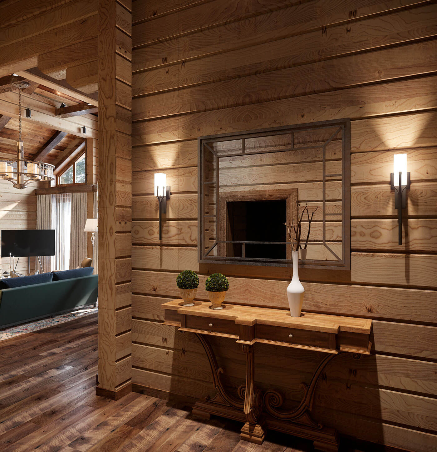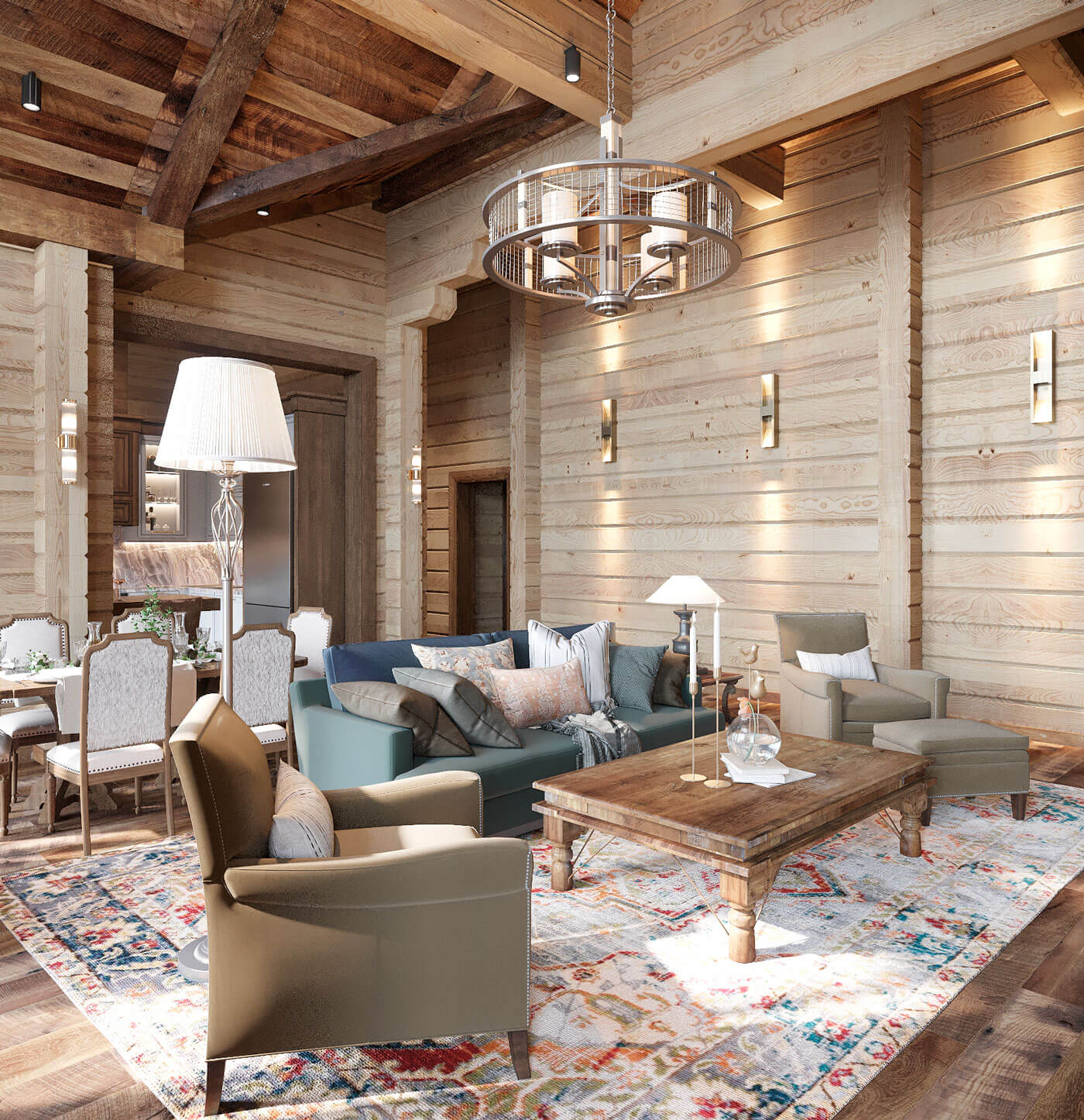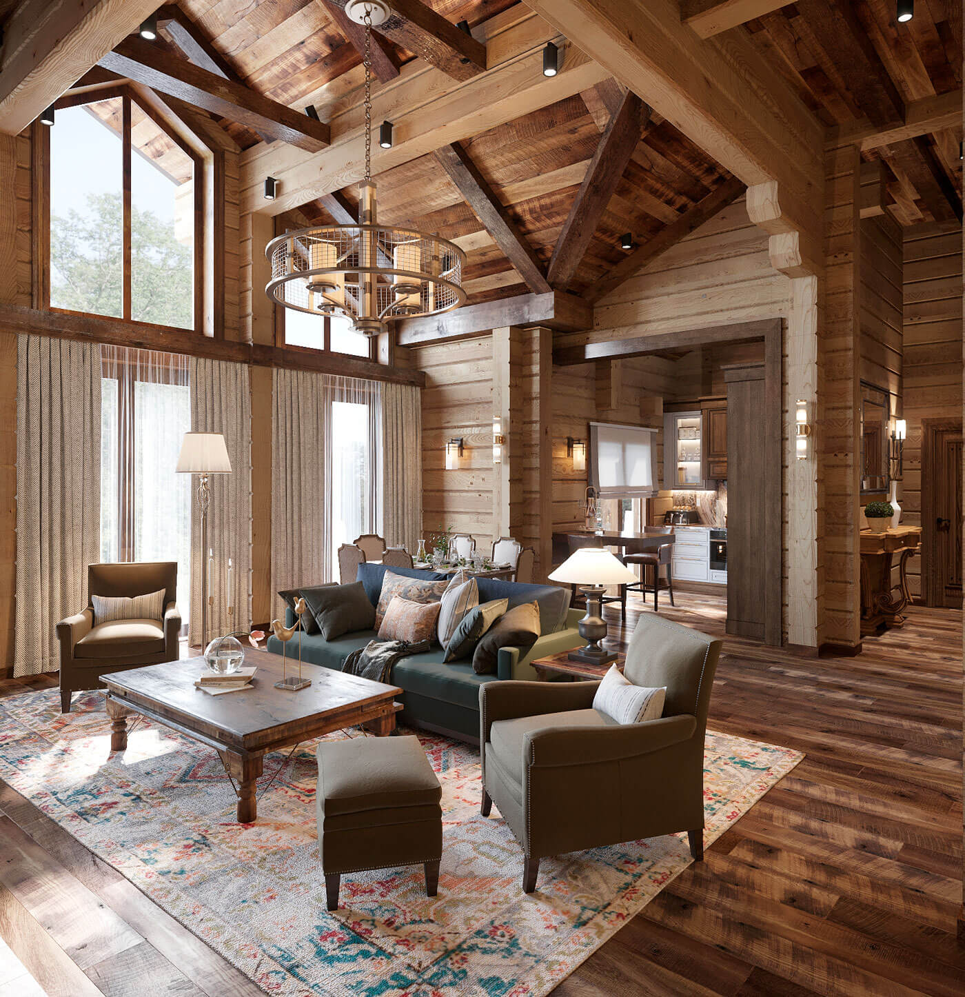 В данном проекте был выбран стиль дизайна «современное американское шале». Предпочтение отдавалось натуральным цветам и натуральным материалам. Внутренний дизайн продолжил архитектурный стиль, что полностью объединило образ дома в единое целое.
