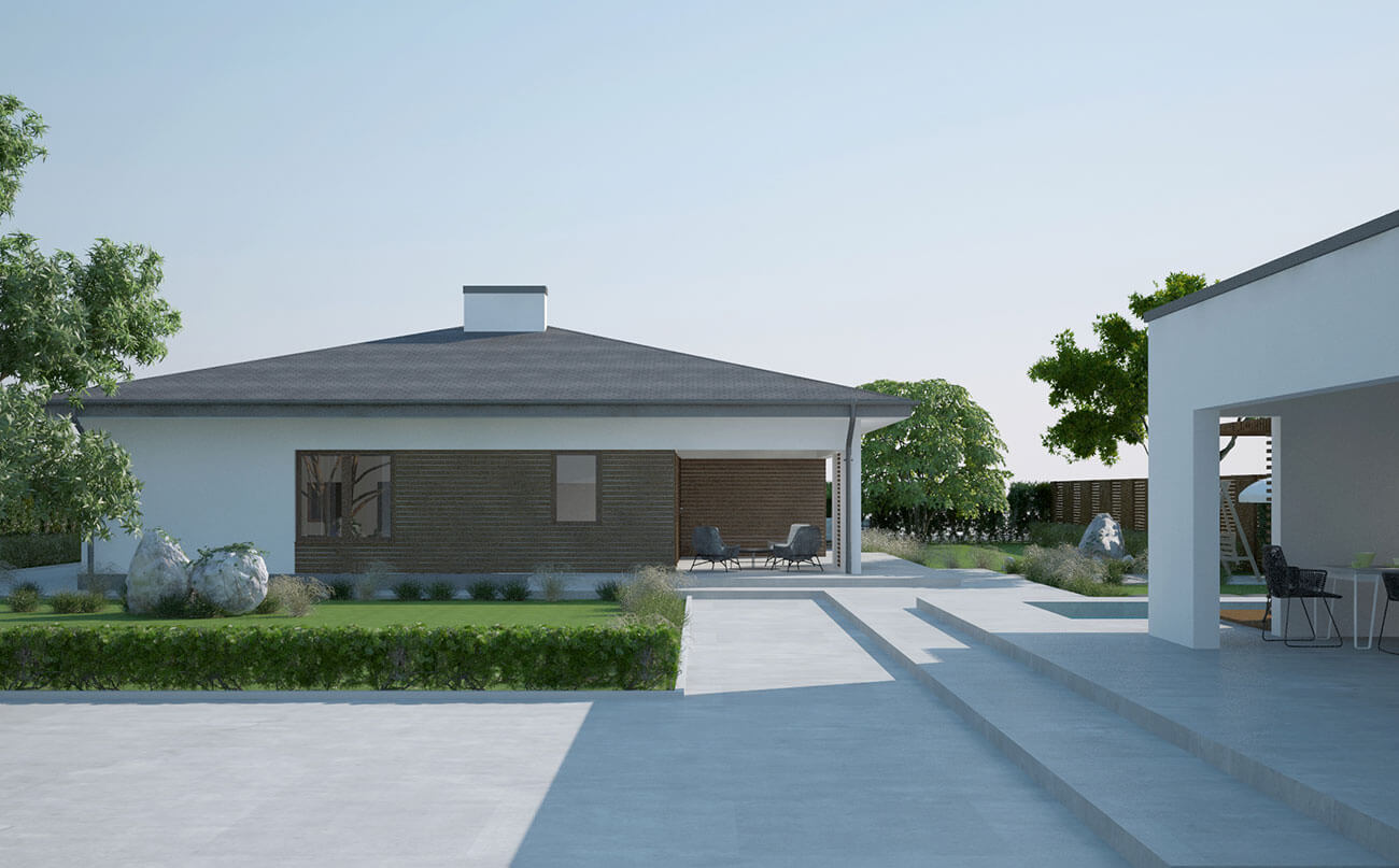 Небольшая усадьба для семьи находится в живописном пригороде Воронежской области. На участке 15 соток располагаются одноэтажный дом (147 кв.м); баня с прилегающими к ней зоной барбекю и бассейном; хозяйственные строения и два парковочных места. Дом и все постройки двора выполнены в стиле минимализм. Пространство максимально простое, лаконичное и функциональное, имеет линейные переходы от одной зоны в другую и с помощью композиционного взаимодействия объединяется в общий, единый организм.