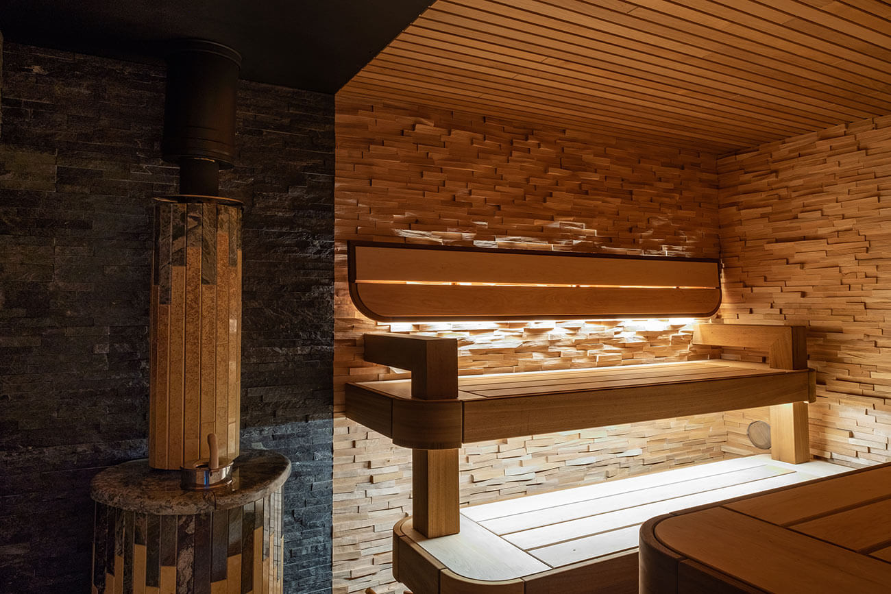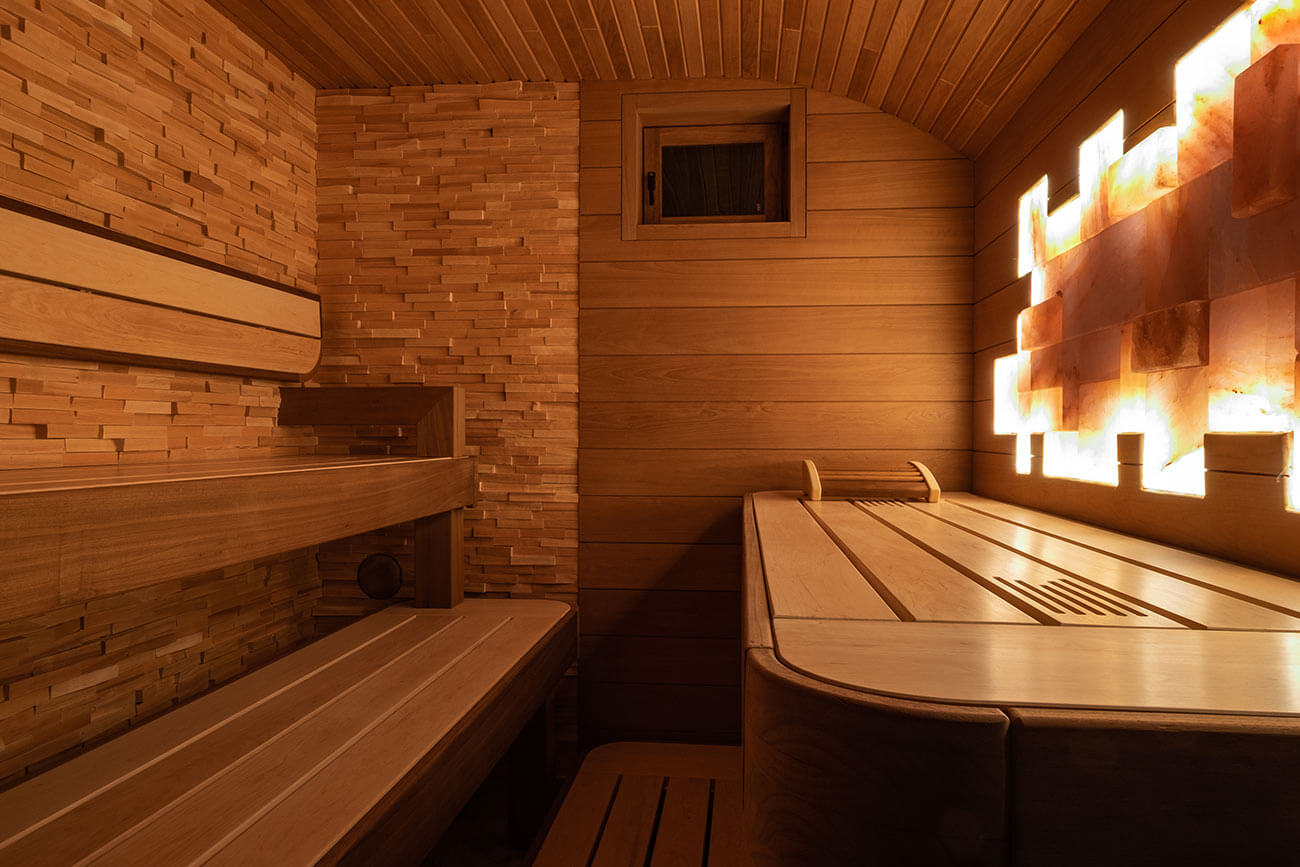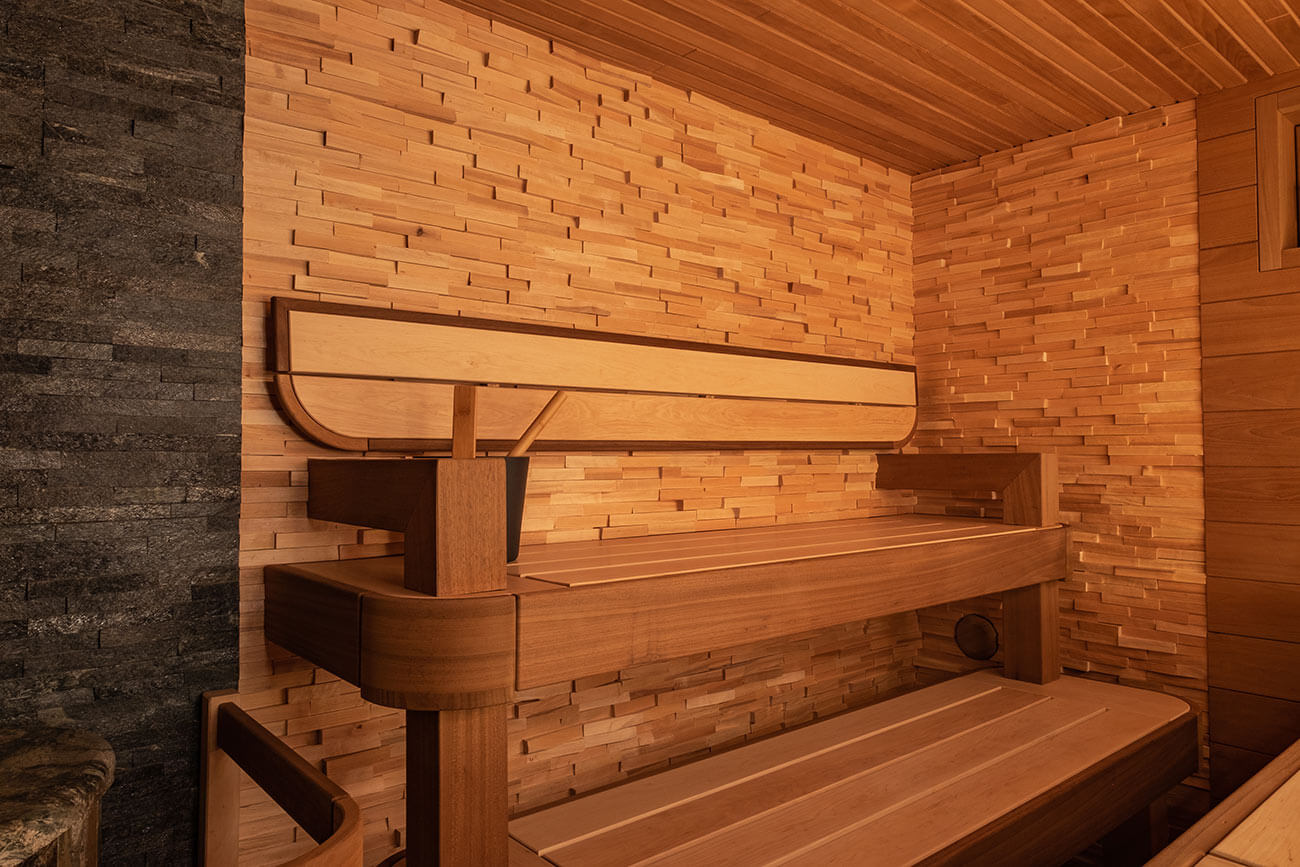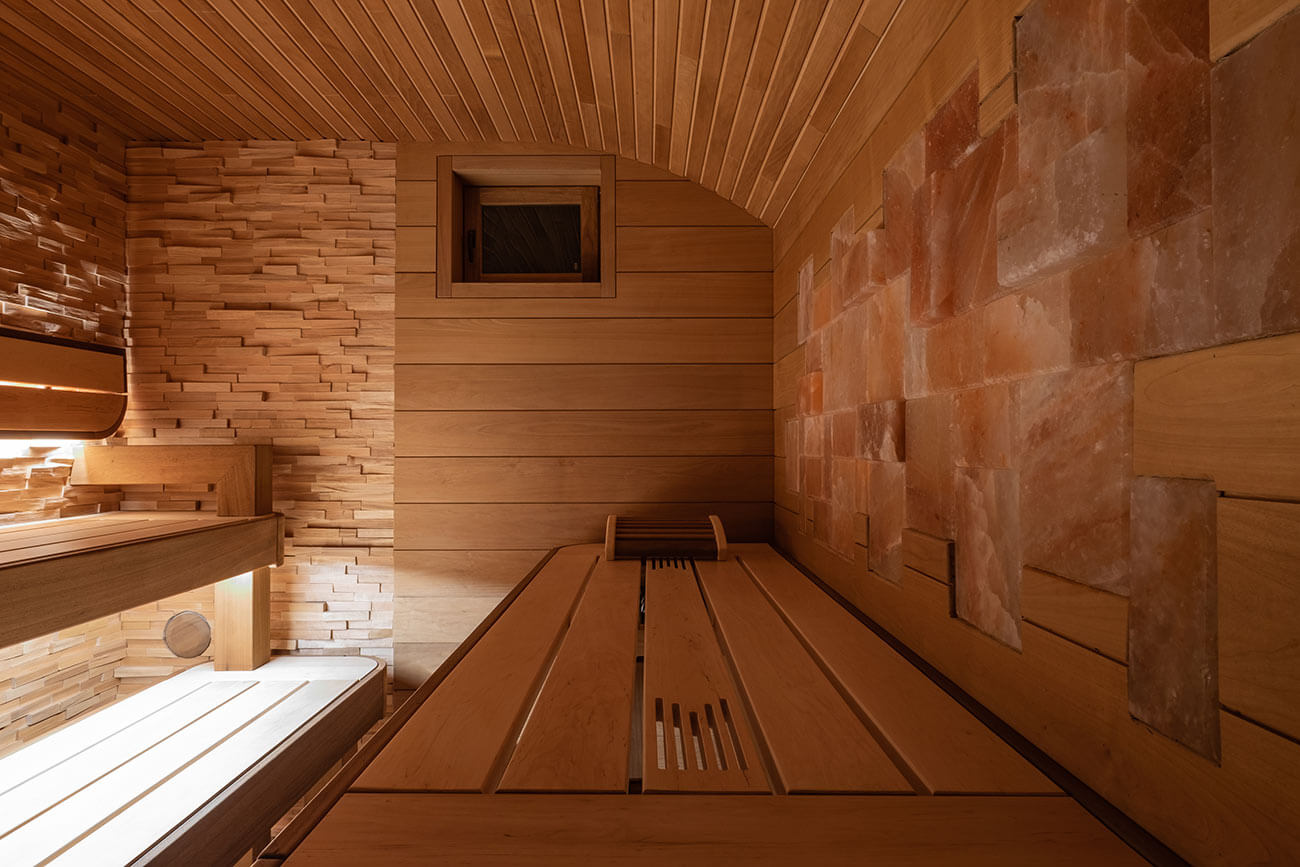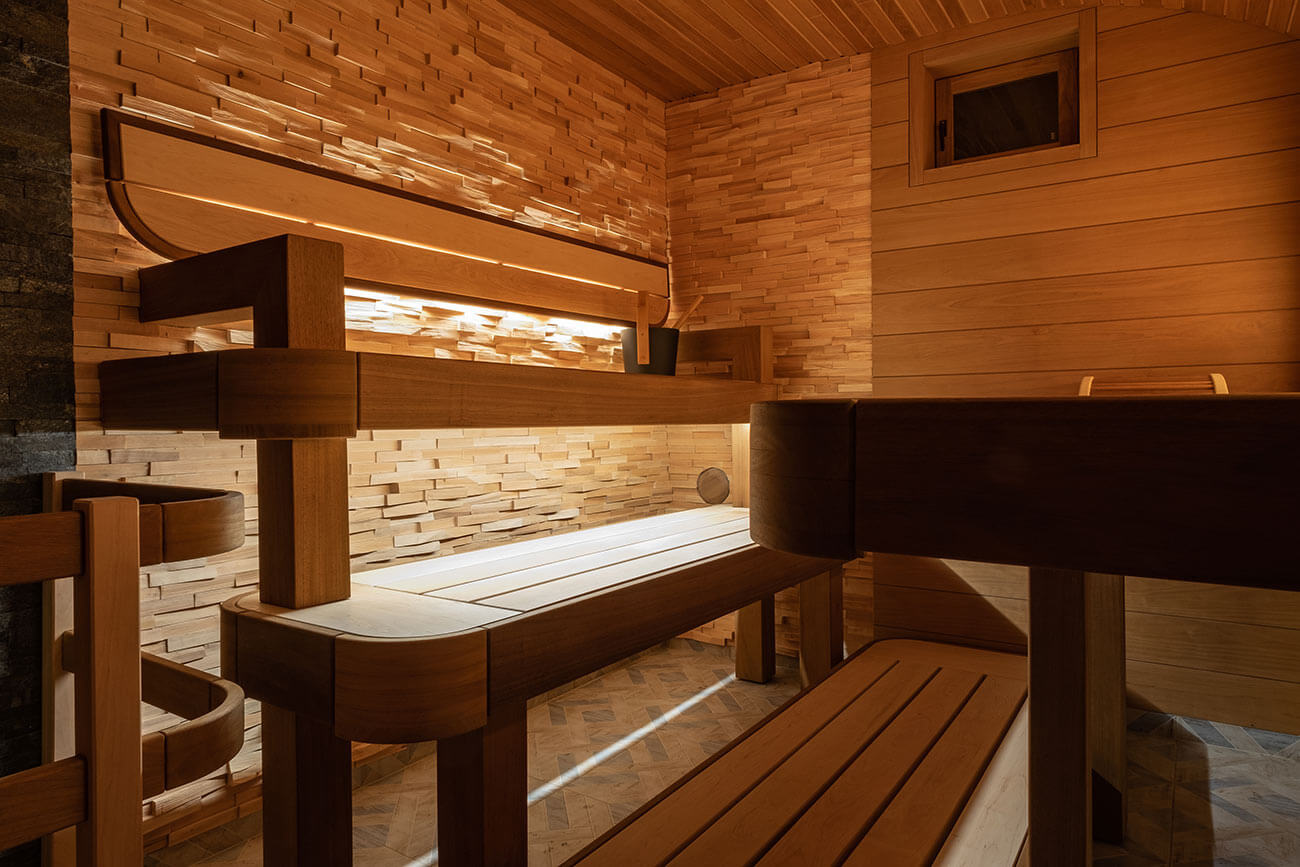 Парная создана для одной семьи. Высоты всех полков выставлены индивидуально, под заказчика и членов его семьи. В полок для парения подведен отдельно свежий воздух с улицы. Есть возможность лежать на полке и через специальные отверстия дышать свежим, прохладным воздухом.