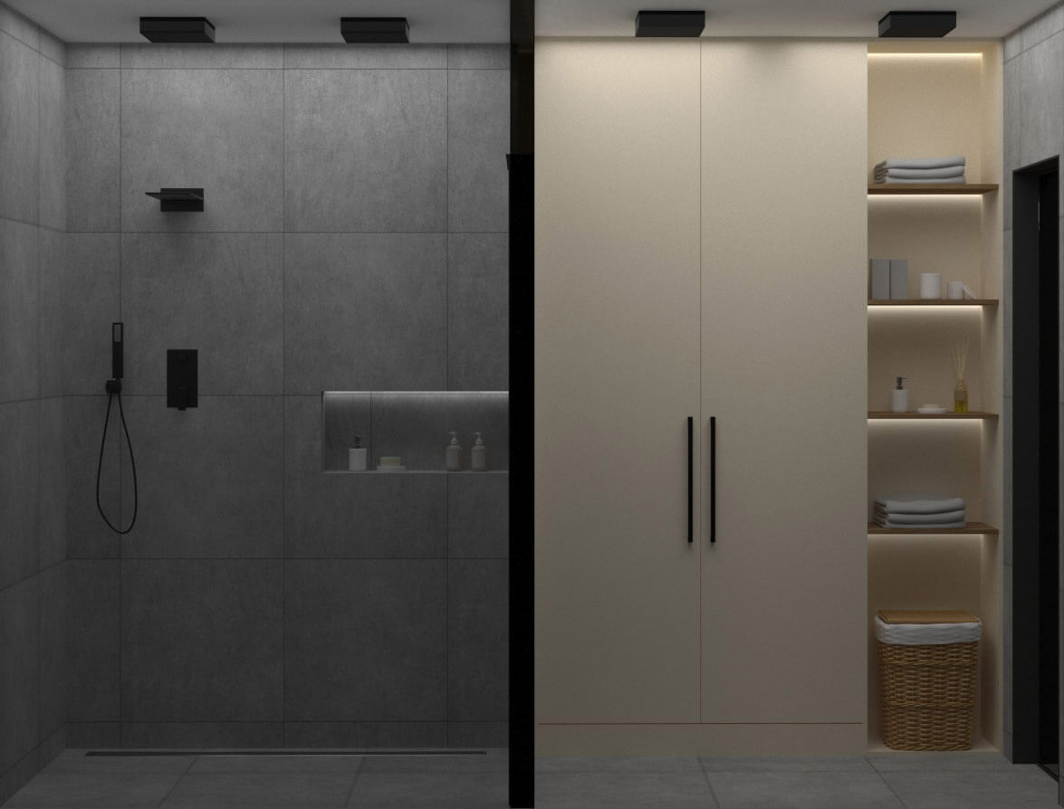 Источниками света являются встроенные потолочные светильники, бра и термостойкая ЛЕД-лента.