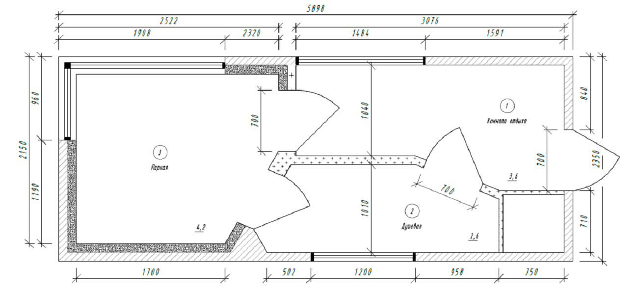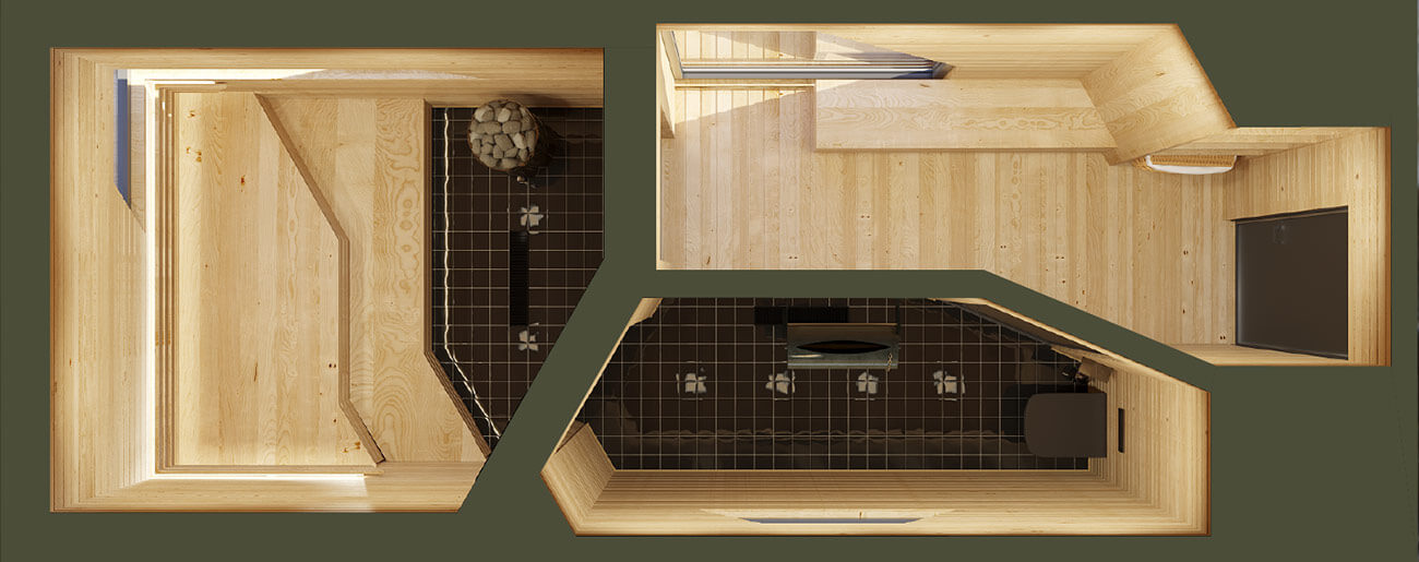 2. Поиск планировочного решения. СПА-комплекс оборудован: душевой, помещением парной, комнатой отдыха.