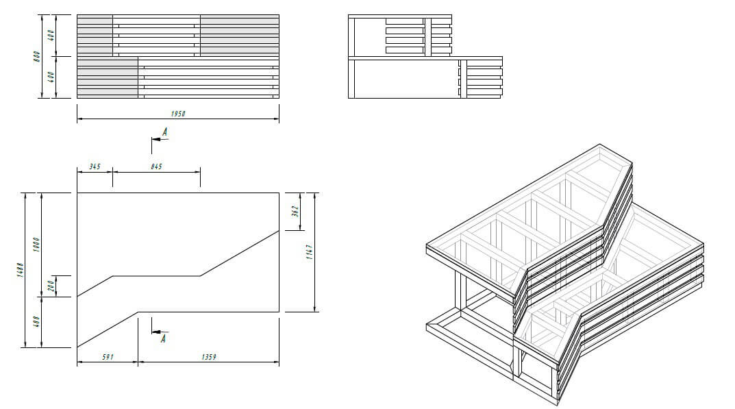 3. Модульная сетка. Для помещения была разработана система организации пространства с помощью вертикальных полос, которые вместе образуют собой ромбический узор. В эту сетку, по возможности, были вписаны: стены, мебель и оконные и дверные отверстия.