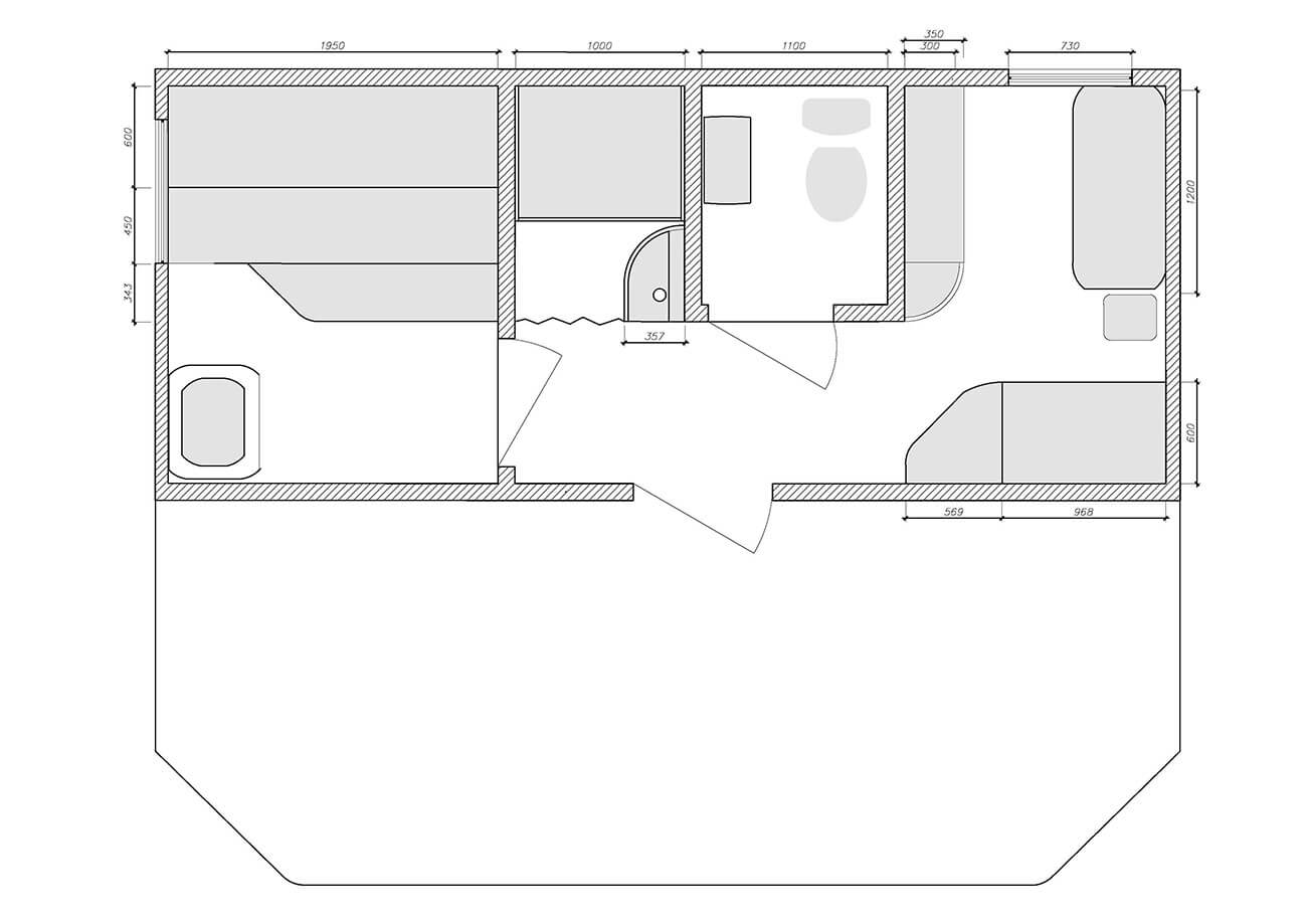 Формообразование интерьера и оборудования построены на сопряжениях круга с прямой.