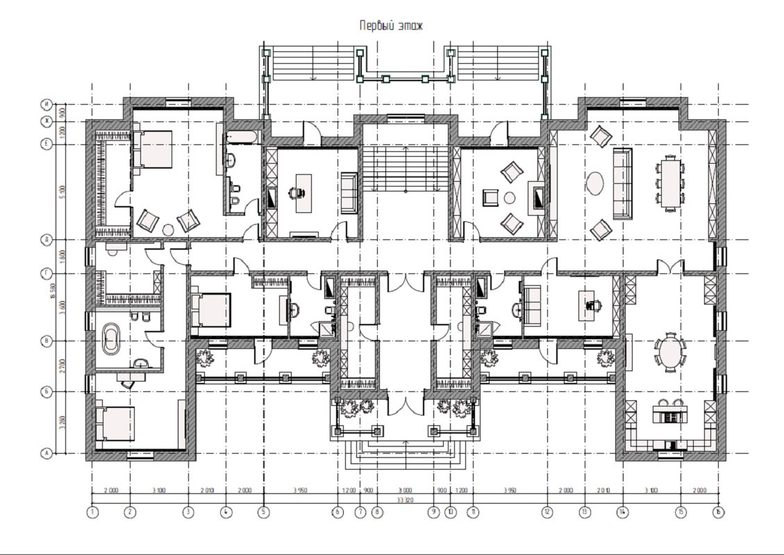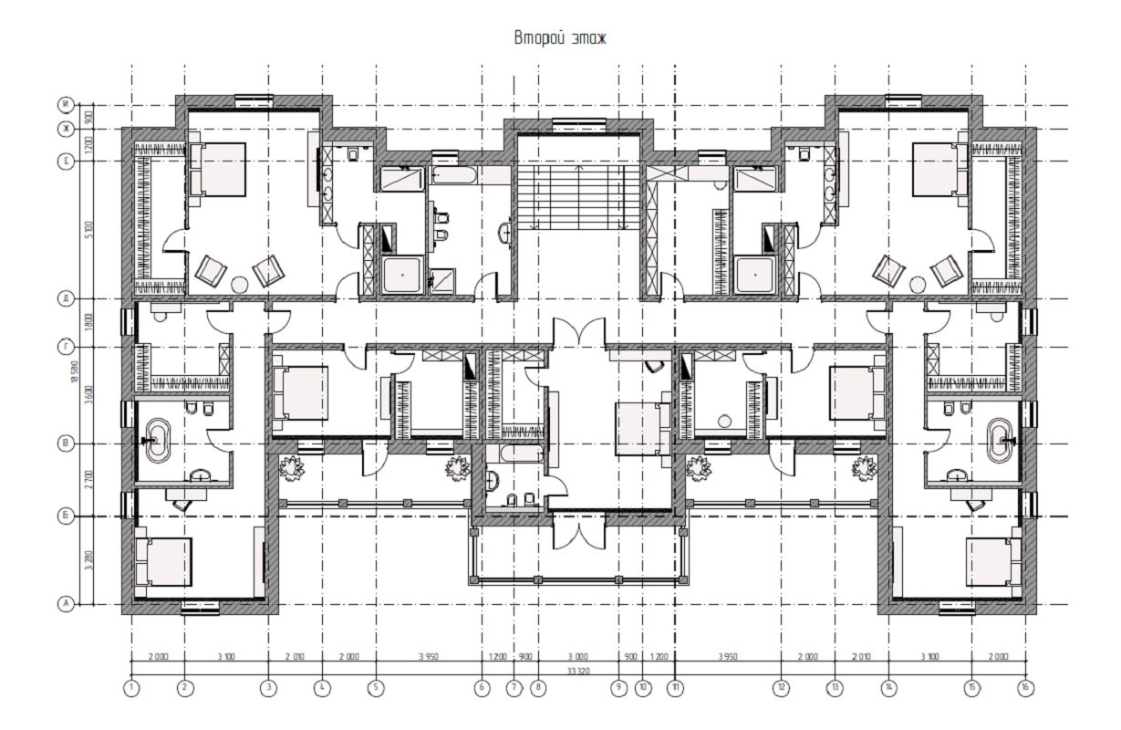 на 2 этаже: 7 спальных комнаты с с.у. и гардеробными