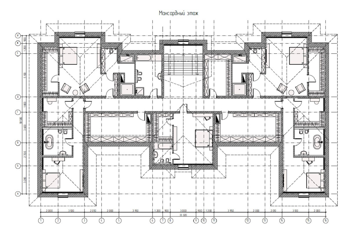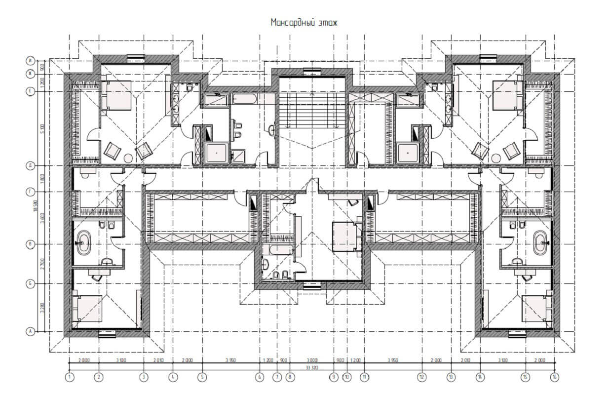 на мансардном этаже: 5 спальных комнаты с с.у. и гардеробными