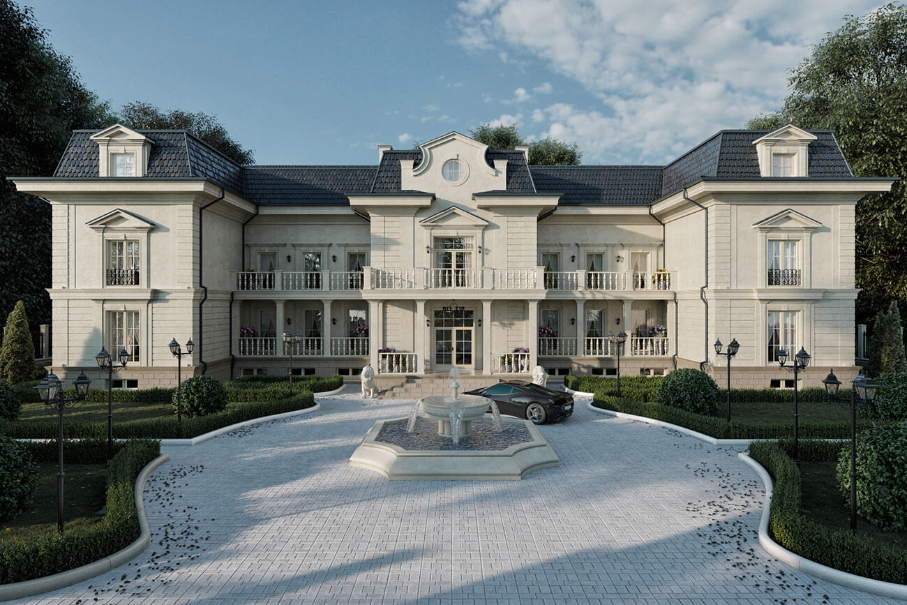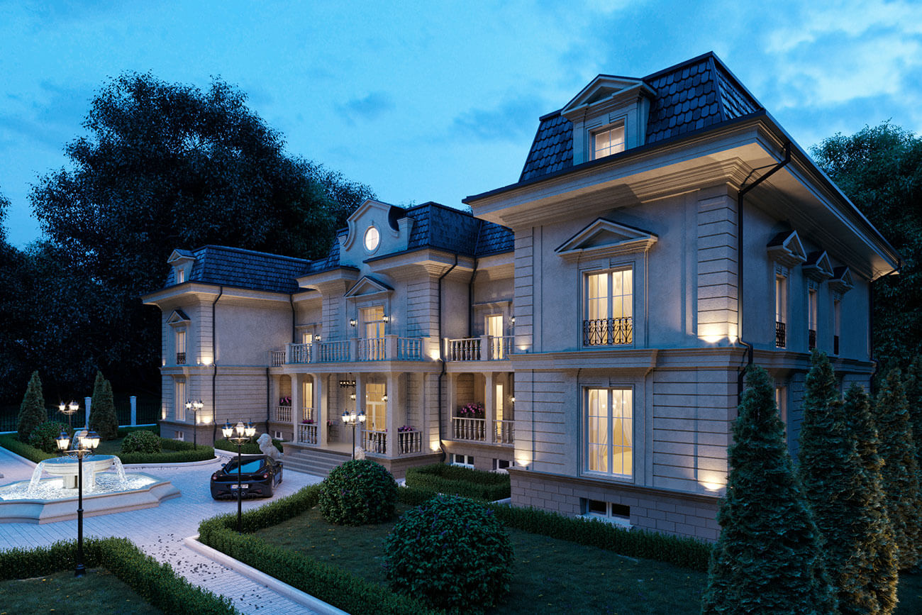 на цокольном этаже: тренажерный зал, сауна с бассейном и комнатой отдыха, с.у., кинотеатр, бильярдная, кальянная, спальня для прислуги.