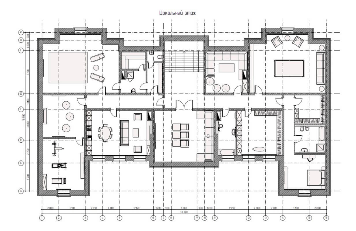 на цокольном этаже: тренажерный зал, сауна с бассейном и комнатой отдыха, с.у., кинотеатр, бильярдная, кальянная, спальня для прислуги.