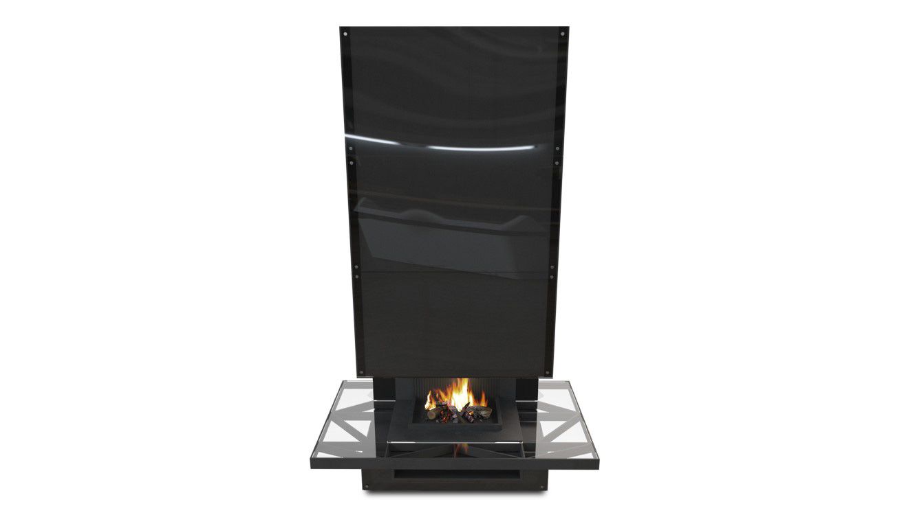 За основу взята каминная топка BRUNNER URFEUER PANORAMA 50/44/66/44. В качестве системы отведения продуктов сгорания запроектирован керамический дымоход Schiedel UNI. Для определения геометрии камина спроектирована стальная рама. Ее задача — быть скелетом конструктивной части камина и каркасом для крепления декоративных стеклянных панелей.