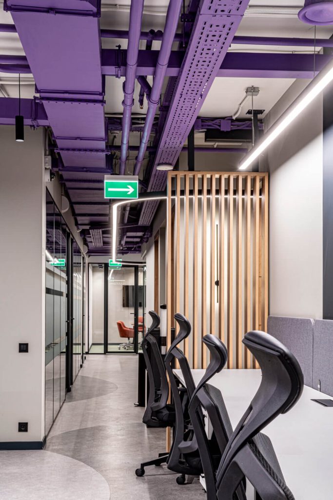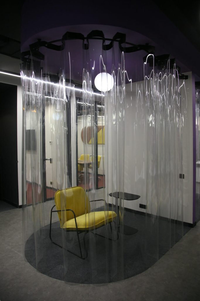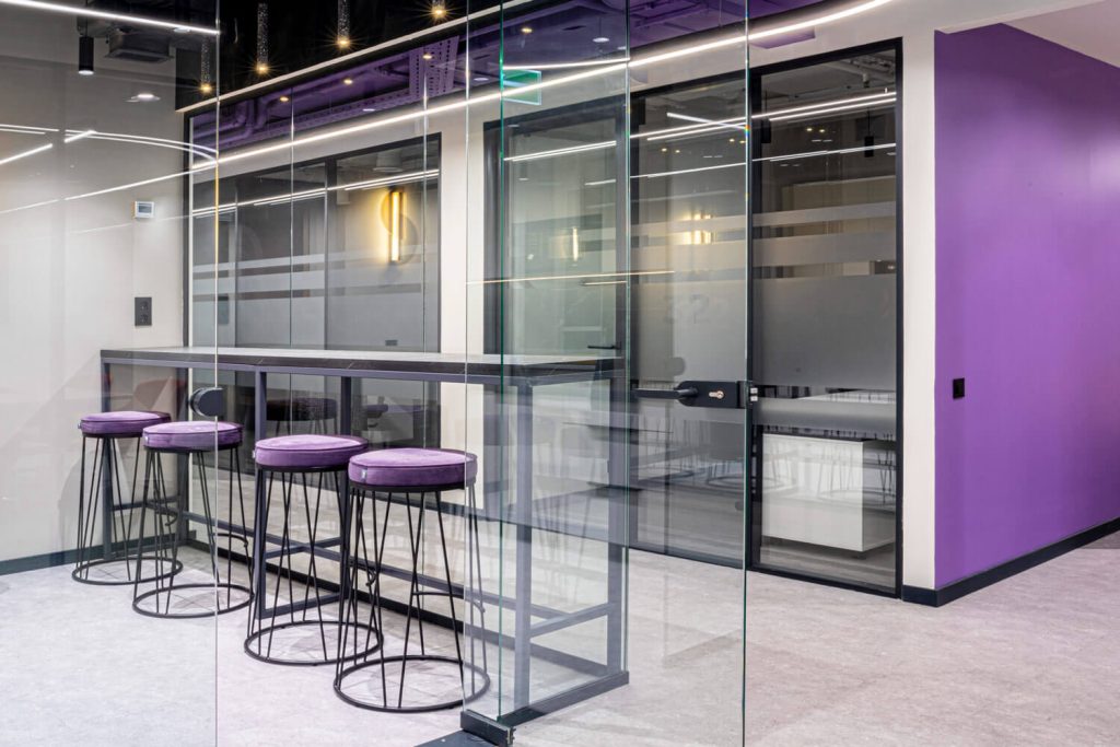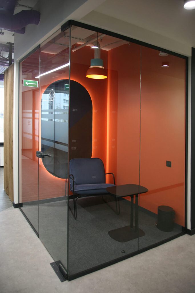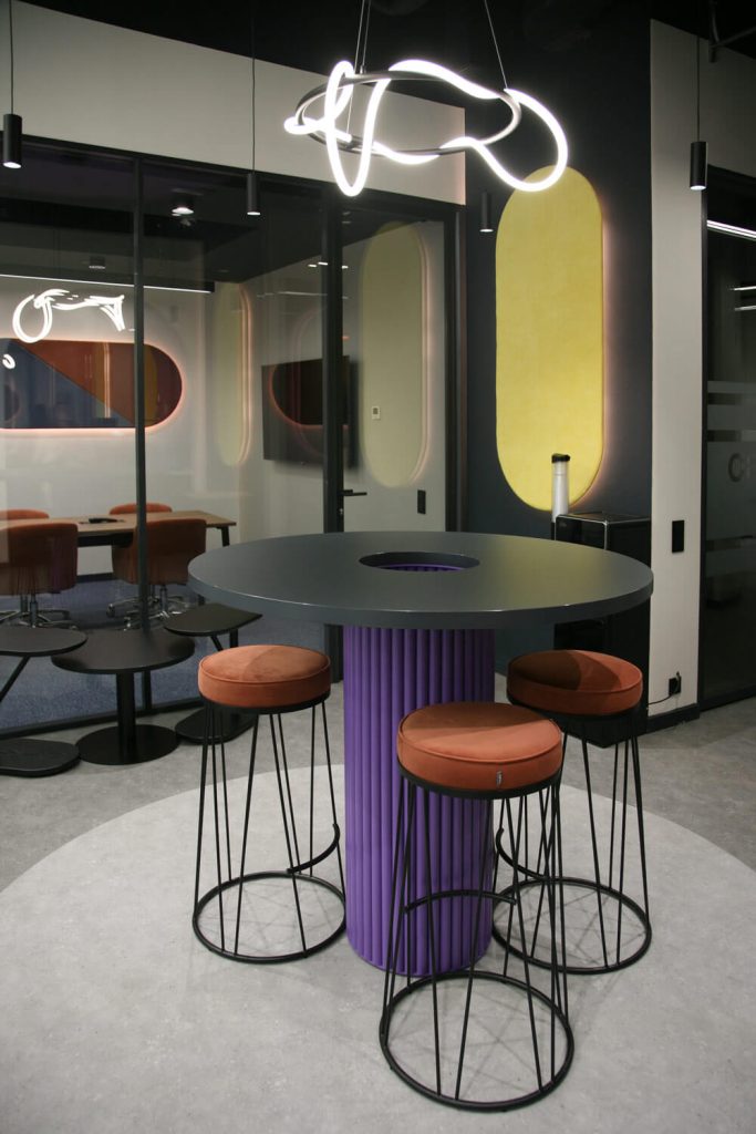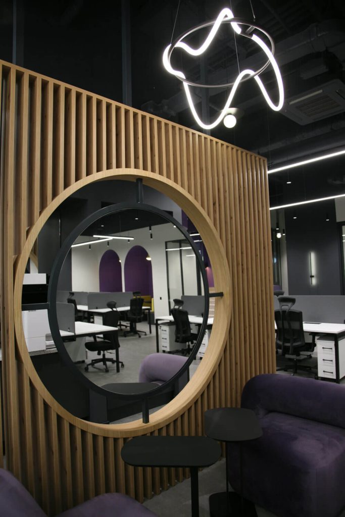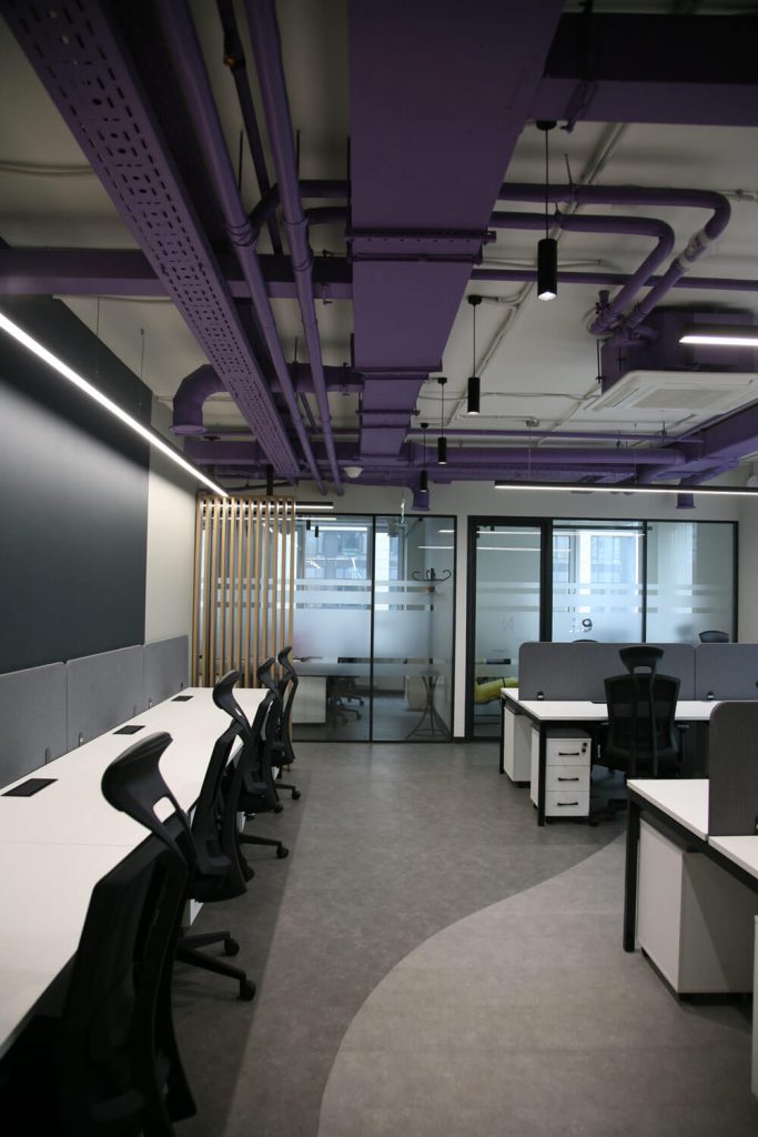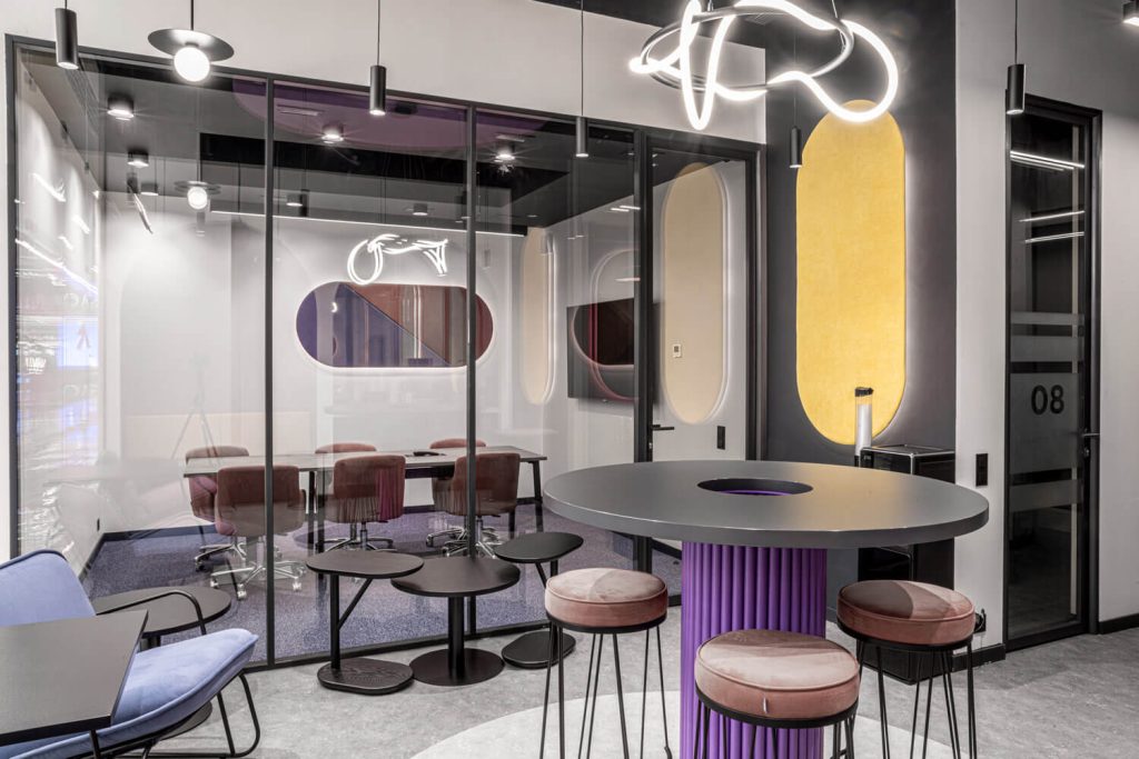 В целом дизайн офиса подчеркивает «футуристическую» концепцию пространства для продуктивной работы, командного творчества и неформального общения. Архитектурные решения и материалы подчеркивают строгость и динамику. Организация пространства способствует визуальной чистоте, технологичности и атмосфере инноваций — интерьер производит впечатление современной, прогрессивной среды, ориентированной на развитие и эффективность.