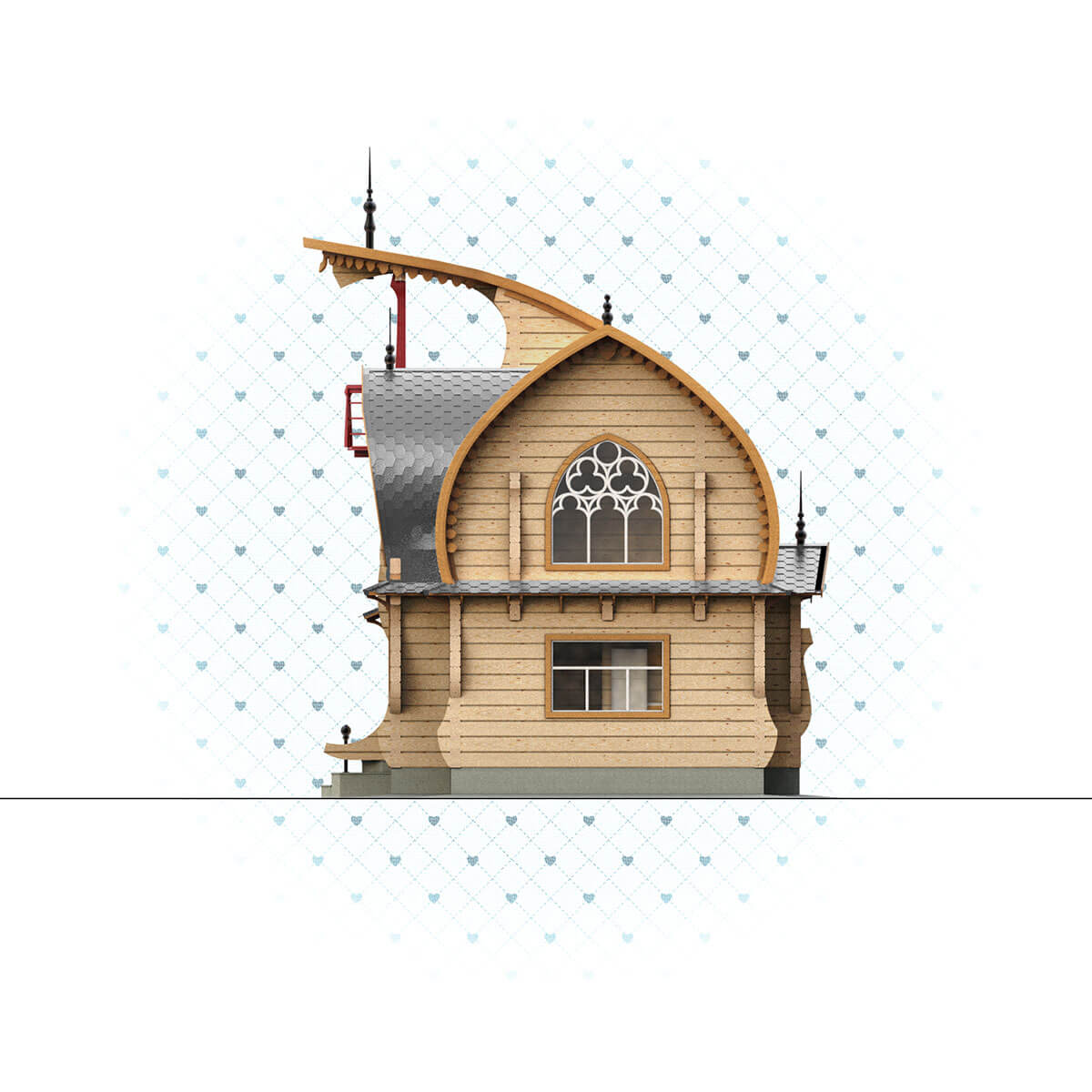 При всей деликатности работы с историческим материалом я уверен, что в формообразовании не имеет смысла ограничивать себя теми рамками, которые существовали у зодчих тех времен. Многие современные архитекторы, например, вообще ограничены лишь СНИПами, которые с любыми законами гармонии коррелируются мало. Да и вообще зачем заниматься подражательством? Например: я никогда нигде не видел односкатной крыши в форме кокошника. Вероятно потому, что девушки не носили их как тарелки на головах - плошмя. И в восприятии людей того времени подобная форма крыши вызвала-бы внутренний диссонанс. Но в наше время многие носят бейсболки с козырьком и даже человек в самом нелепом головном уборе не вызывает возмущения. Поразмыслив таким образом я смело надел «головной убор» дома набекрень.