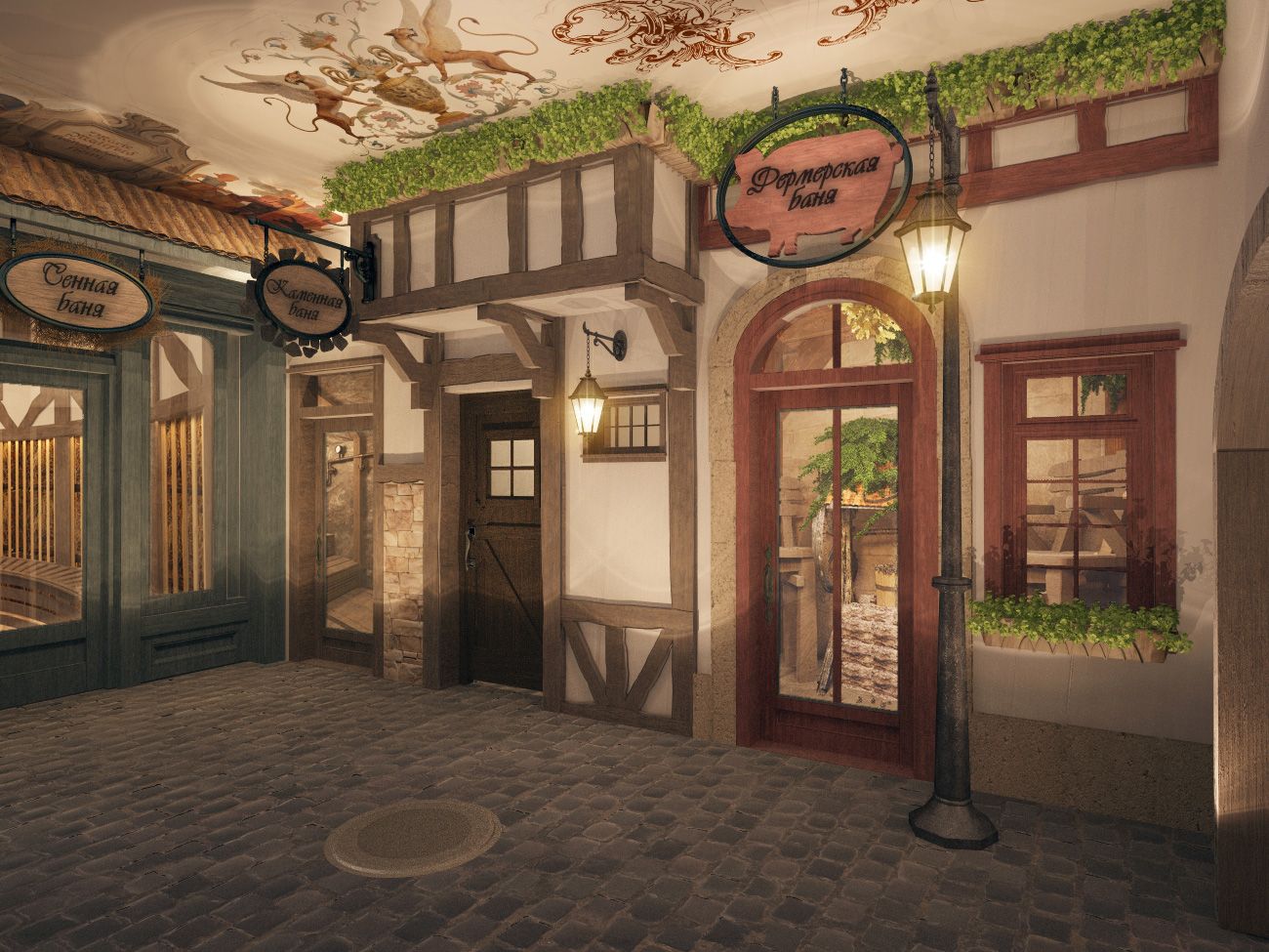 Интерьер зоны Баварии позволяет ощутить себя в настоящем немецком городке. За основу взяты старинные улочки Баварии с их уникальными фахверковыми домами. «Каменная баня» создана по мотивам немецких штолен, которые существовали в Баварии для добычи камня и руды. «Сенная баня» напоминает немецкие сенницы и насыщена ароматом свежего сена, луговых трав. «Фермерская баня» возрождает альпийские традиции целебной паровой сауны.