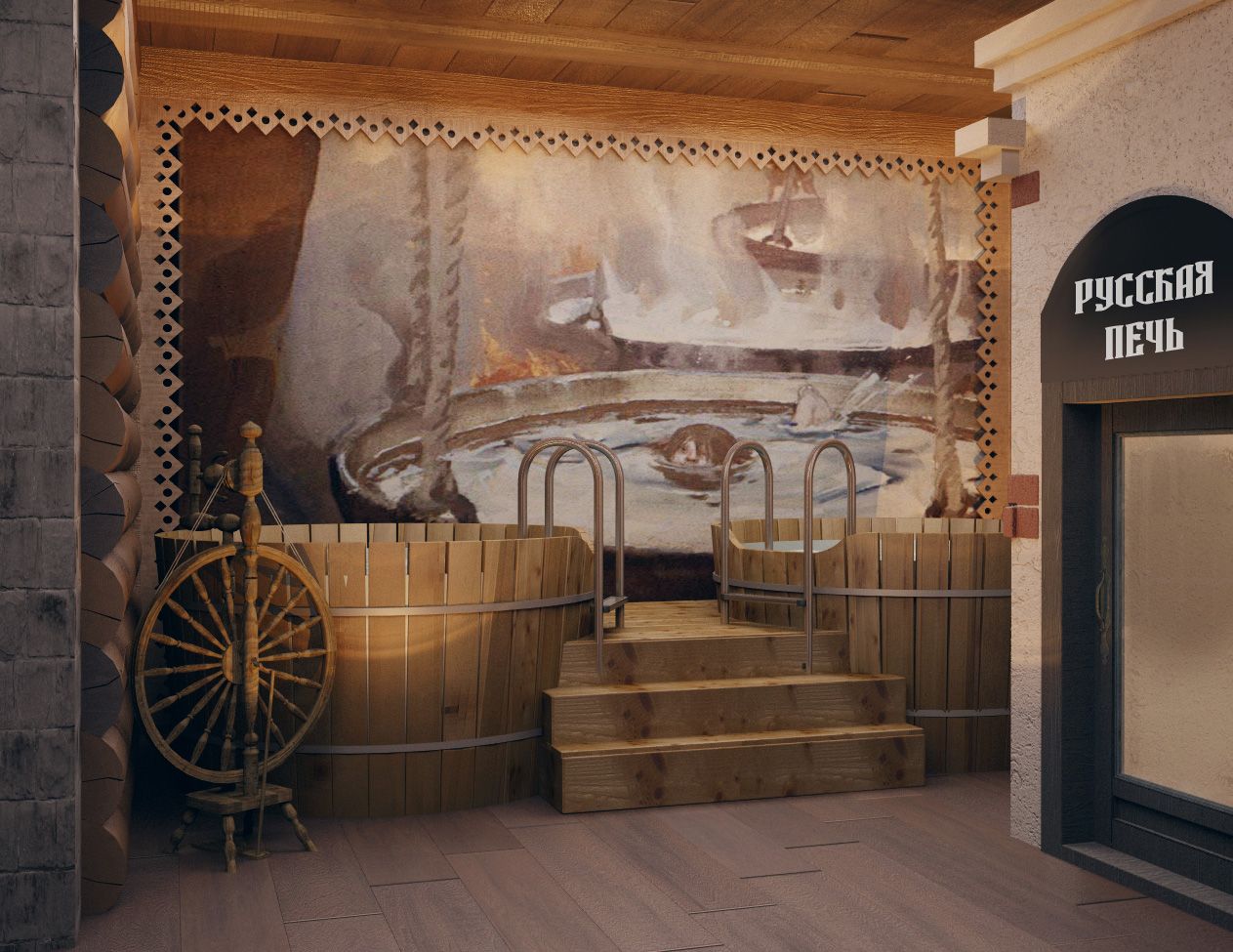Зона России образована атмосферой русской бревенчатой избы со сказочным и мифологическим прочтением. Посетителя ждет настоящая сауна в русской печи, купели из сказки про Конька-горбунка с различным температурным режимом, бочка льда для охлаждения.