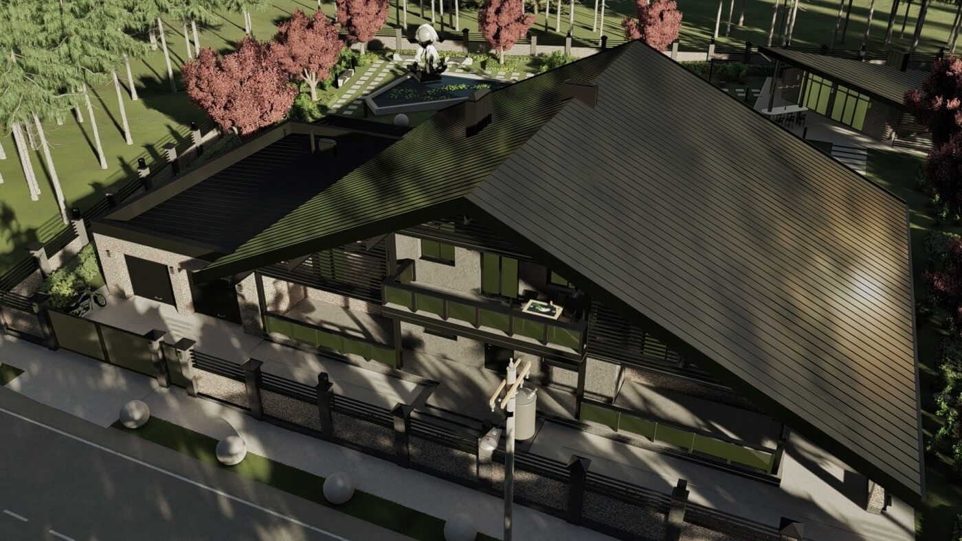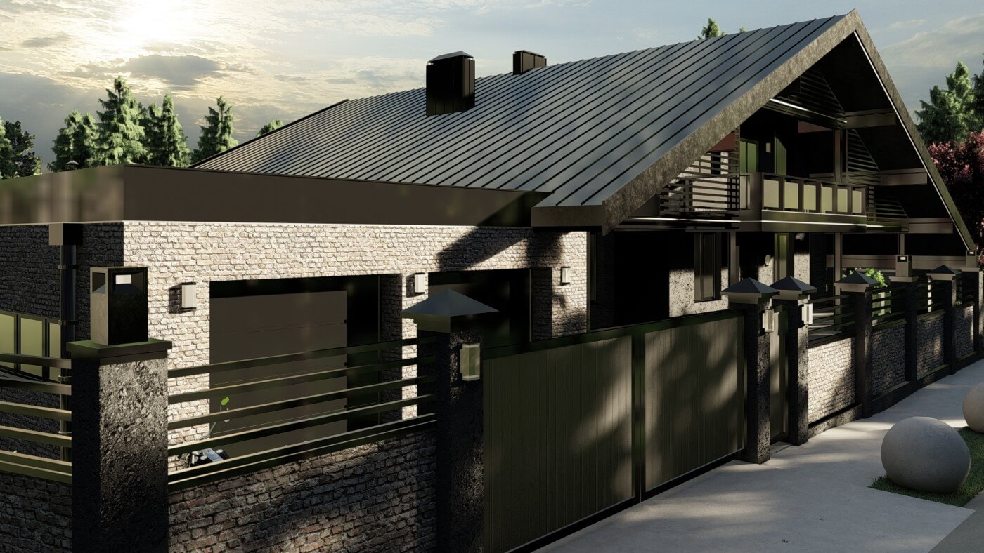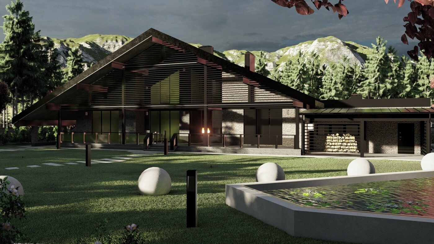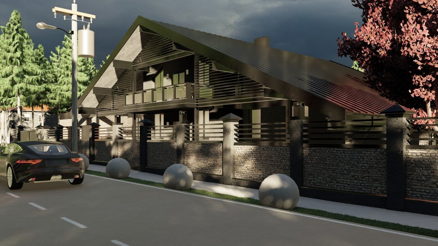 Неплохим дополнением экстерьера дома является архитектурная подсветка в вечернее и ночное время. Она регулируется настроением хозяев коттеджа и может быть либо бело-лунная, либо ярко-красная. Первый сценарий — для создания вокруг дома атмосферы добра и тепла, второй же заставит очевидца оробеть и покинуть это место как можно скорее. Впрочем, вы можете убедиться в этом сами, посмотрев видеопрезентацию проекта на нашем YouTube-канале: https://youtu.be/iIEVSBYqDAM.
