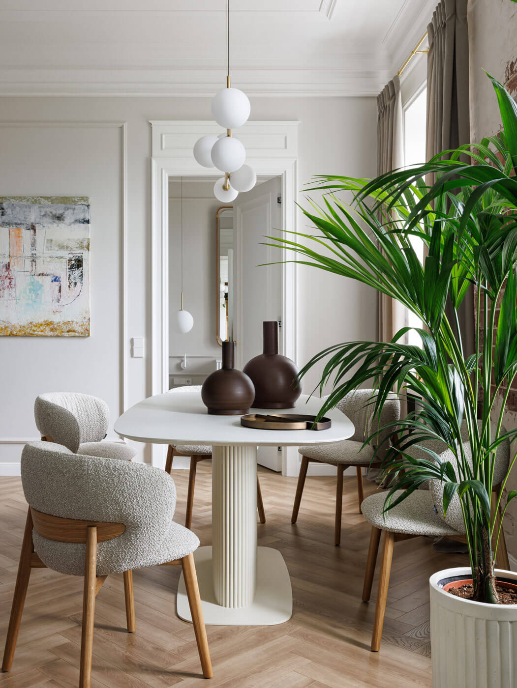 В результате, точно в срок дизайн-бюро удалось вдохнуть новую жизнь в квартиру в доме Адамини на Марсовом поле. Стиль неоклассицизм позволил сохранить традиции прошлого, филигранно соединив будущее. Благодаря инвестициям в трофейную недвижимость у хозяев квартиры появился шанс если не войти в историю города, то стать её частью, создав своё фамильное гнездо в старинном особняке Петербурга.