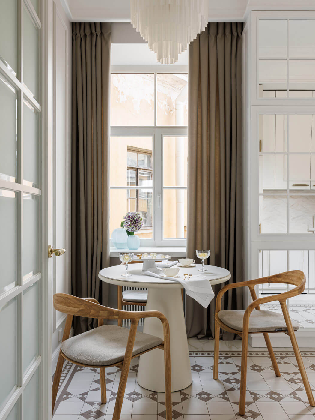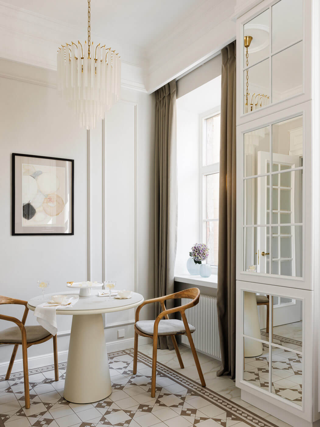 Спустя 2 века в доме Адамини дизайн-бюро представило свой проект — трофейную квартиру с парадной в стиле неоклассицизма. Именно история дома и дух старинного города вдохновили автора проекта на преображение квартиры площадью 100 м². Главной задачей здесь было сохранить атмосферу шедевра архитектуры и вдохнуть новую жизнь в это историческое место.
