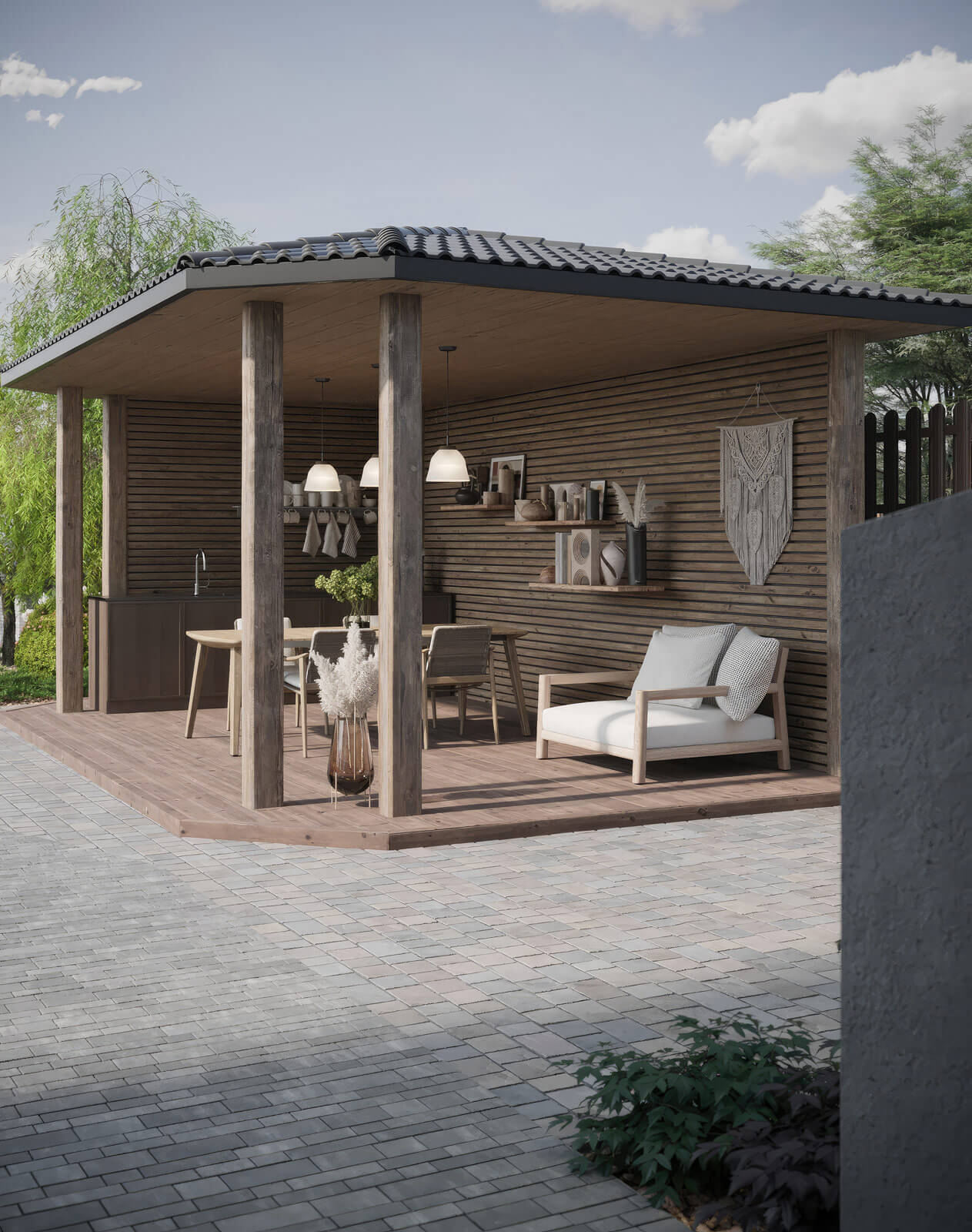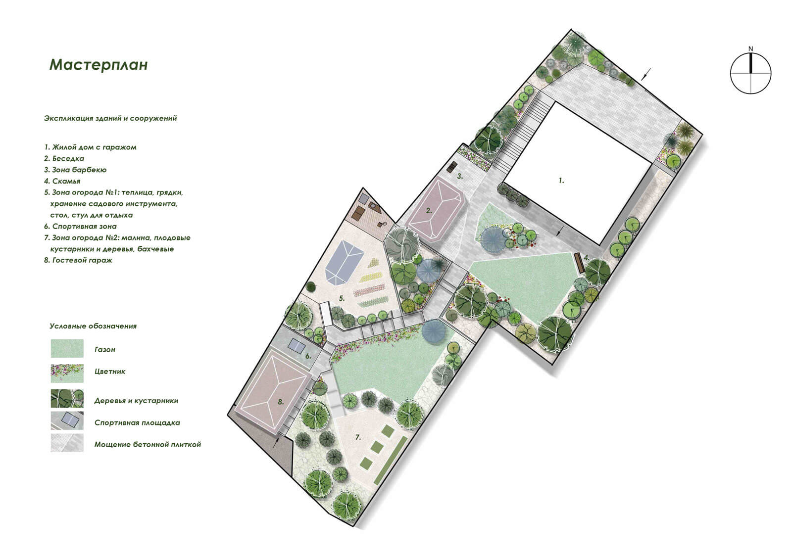 Два объединенных участка неправильной формы, с перепадом высот более 5 метров создали условия для множества идей. Главная задача — создание уединенного и комфортного пространства для семьи нескольких поколений.