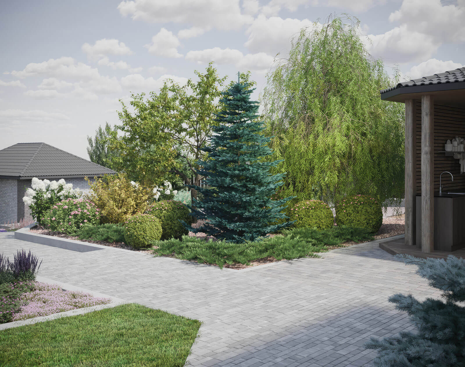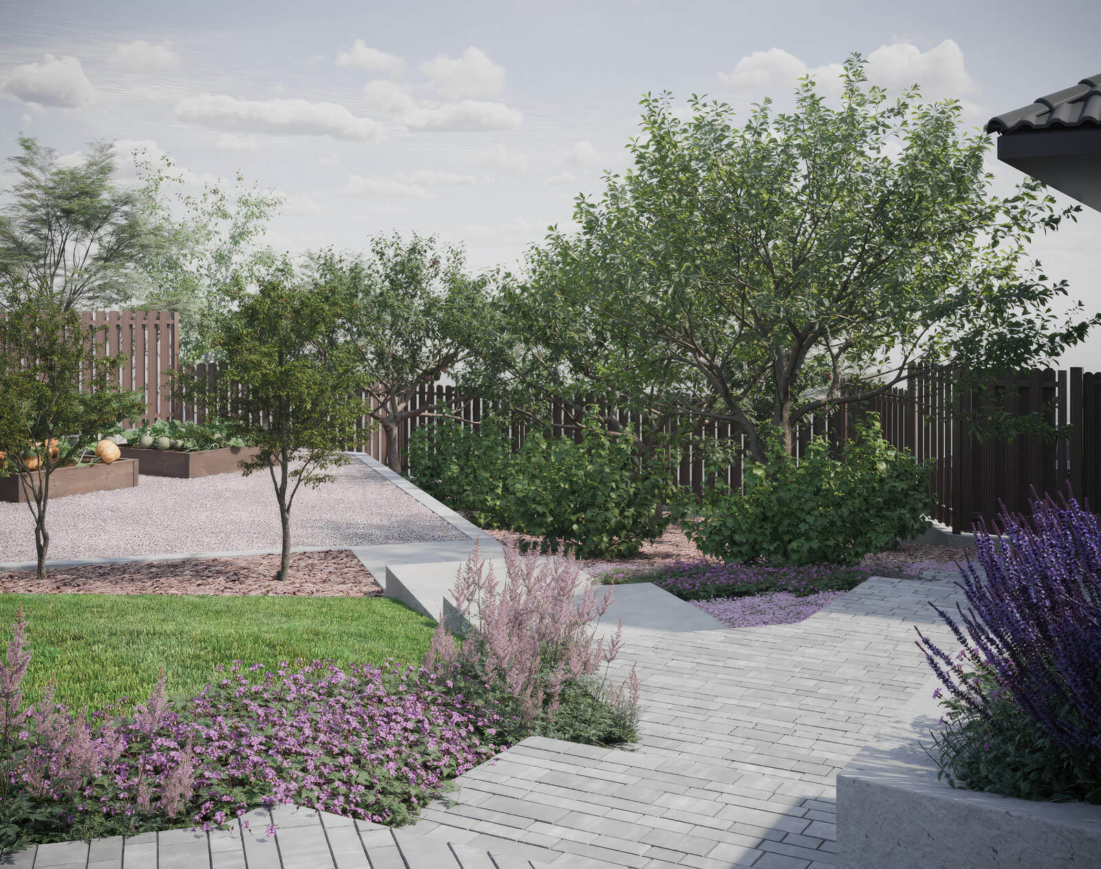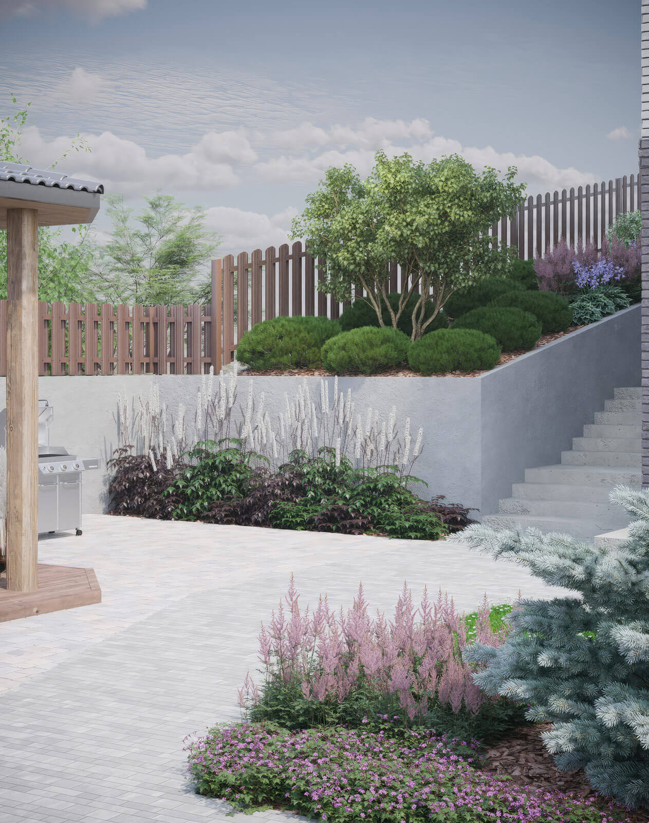 Этот ландшафтный проект стал воплощением желаний семьи врачей, обратившихся за созданием сада. Владельцы — будущие пенсионеры, и этот участок видят родовым гнездом, местом, где будет собираться семья.