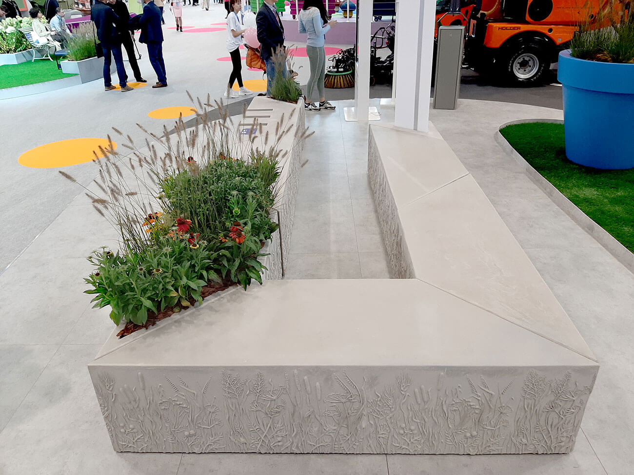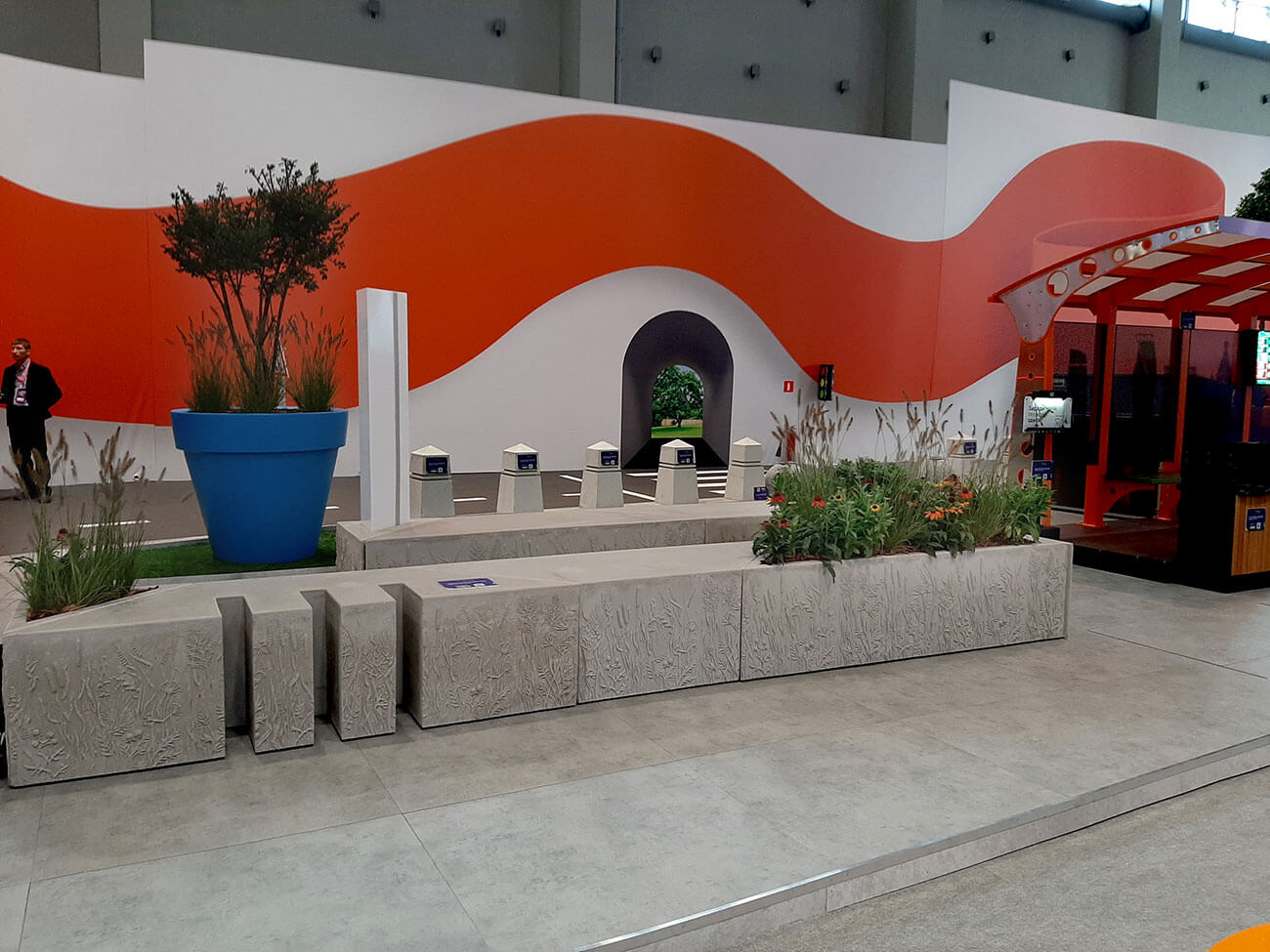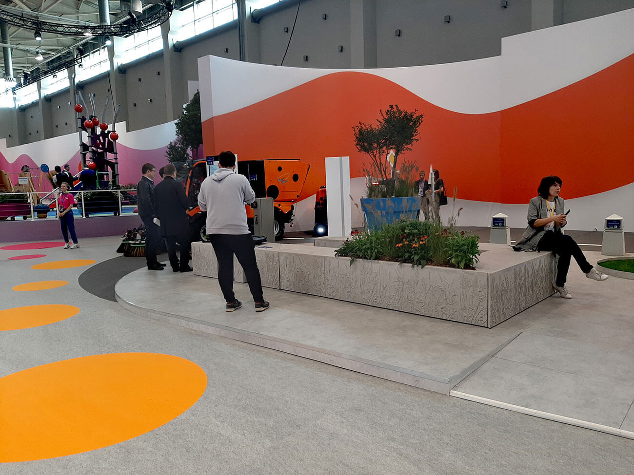 Универсальная модульная система «Луга» — это многофункциональный конструктор городской мебели, включающий в себя различные функциональные модули, таки как скамья, кашпо, урна, велорпарковка, аренда велотранспорта, дата-станция, Wi-Fi-модуль, фонтан, памятный знак, навигация,фонарь, треугольный лайтбокс.